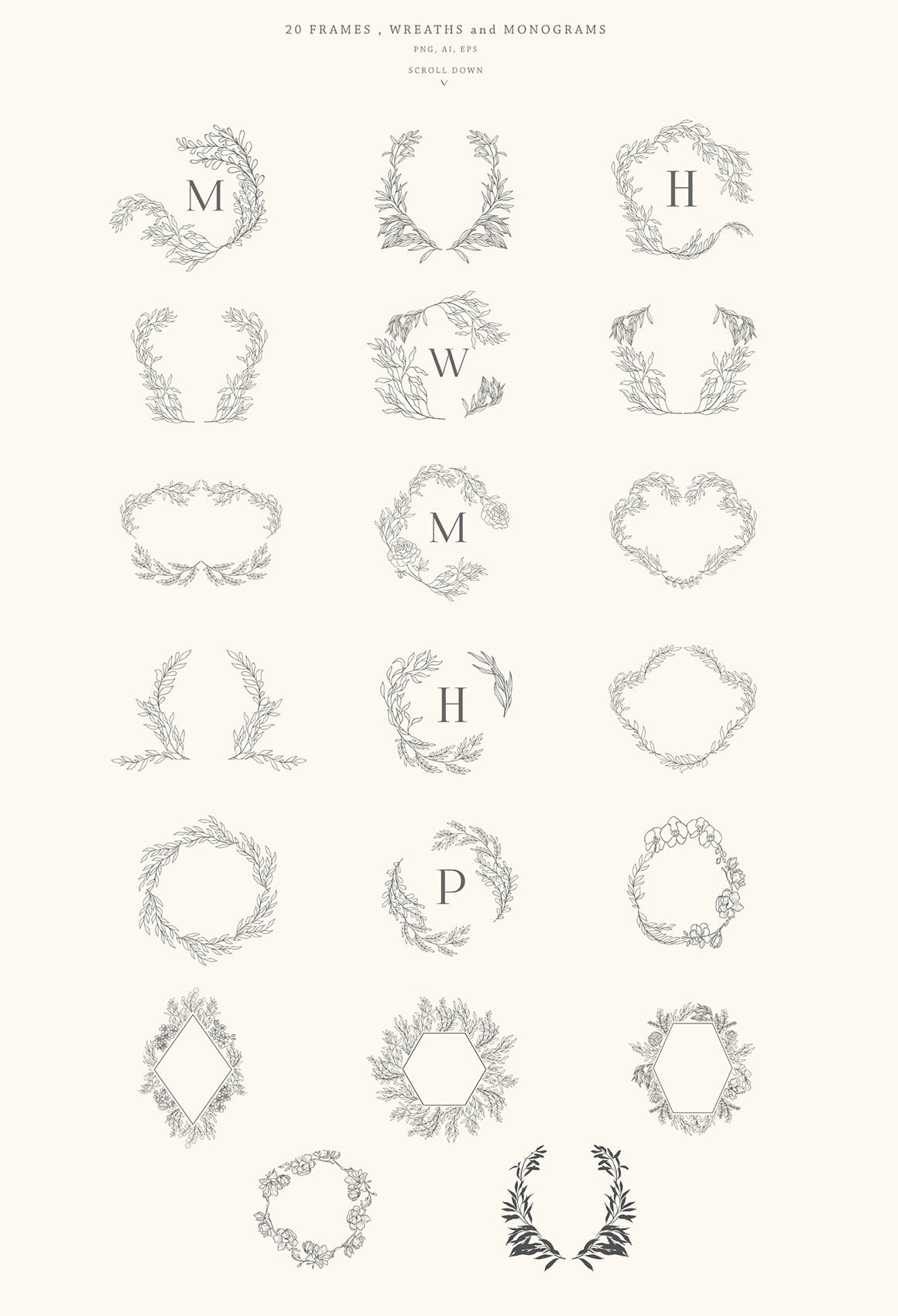 - 20 Frames, Wreaths, Monograms, as AI, EPS, separated PNG (5000×5000 px, 300 dpi) files