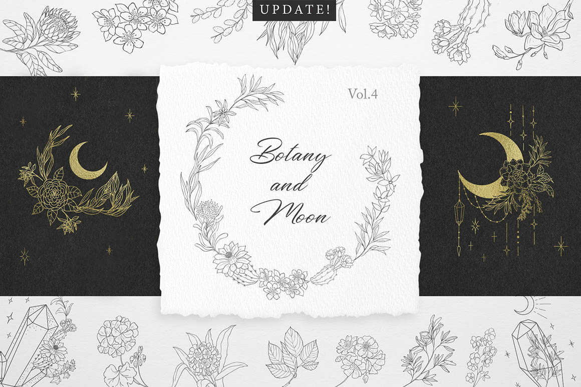3. Botany & Moon – Hand Drawn Line Art from Designwork