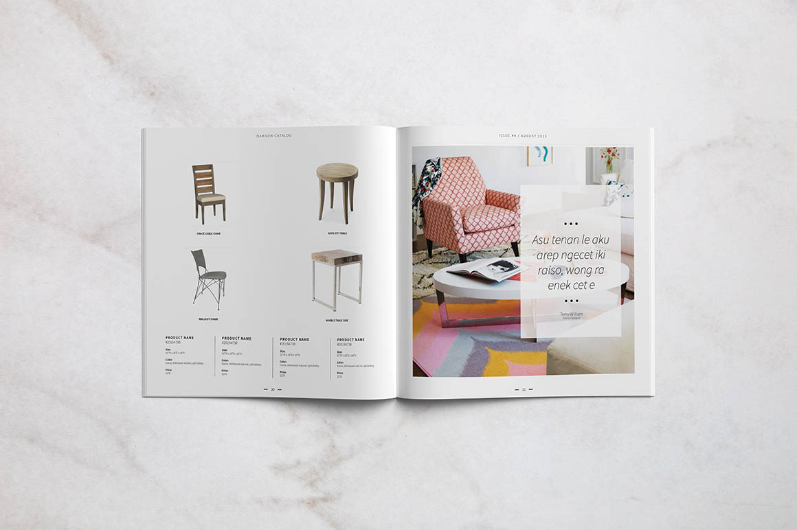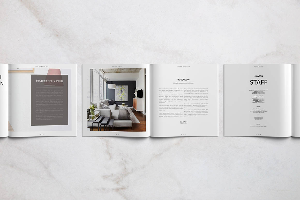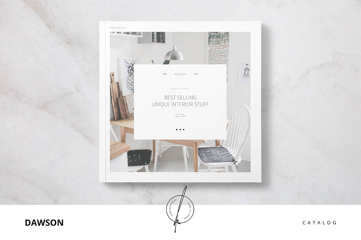 The Dawson Catalog is 24 print page Interior pricing and guideline catalog Indesign template with variation layout for mix and match page. This Is for publication like catalog, lookbook, product showcase, portfolio, photography, and more. With standard square 8in size. There are unique spread for your publication and easy to change with your own color pallete, work with master page to make automatic numbering, easy to change all text with paragraph style.