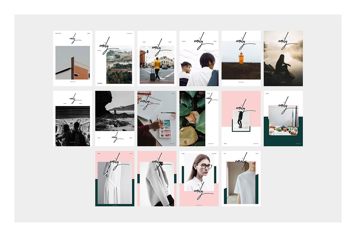 Emily magazine is a minimalist fashion lifestyle and travelling magazine with 46 print page, a very clean, simple and readable layout, neat typography, and 16 alternative cover design bonus. This template has been arranged specifically detailed with grid, seprated layer, and paragraph + character styles.