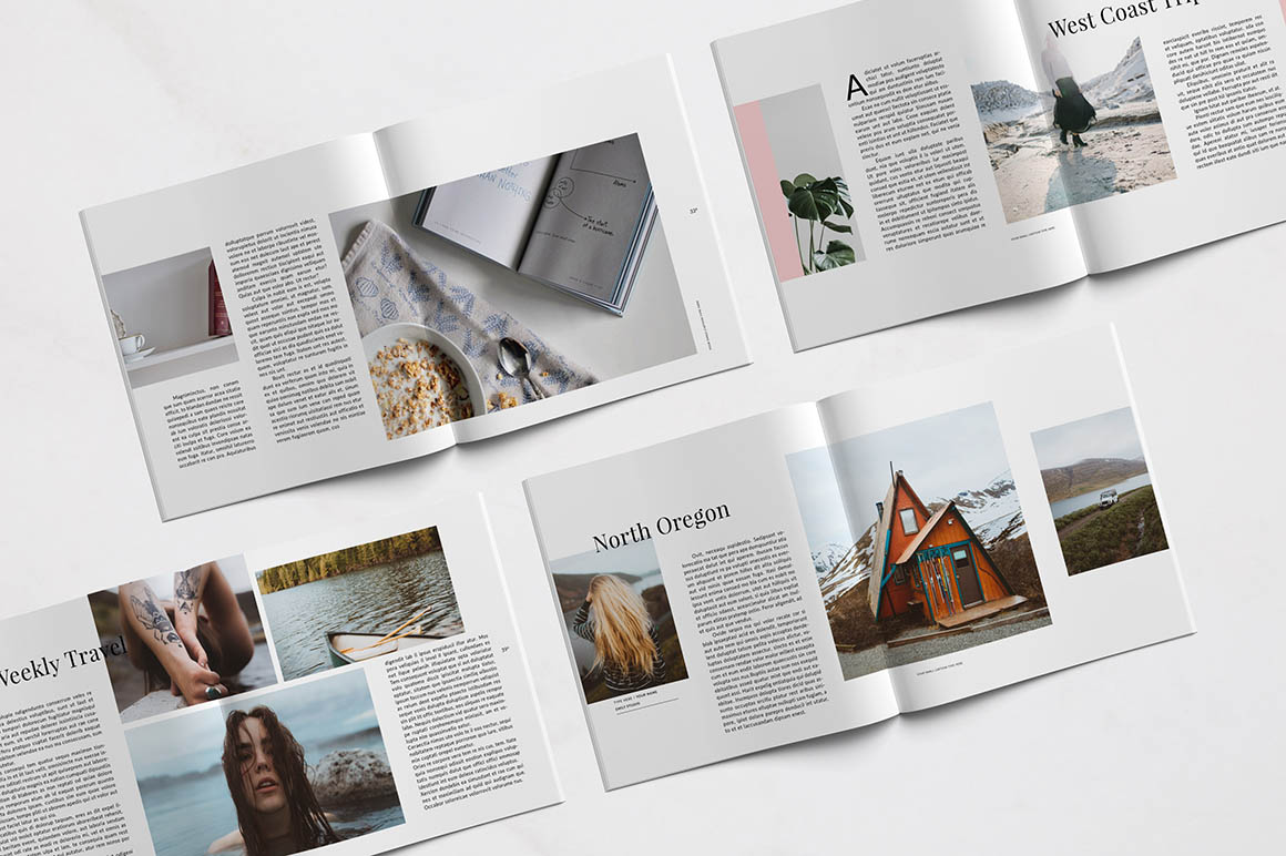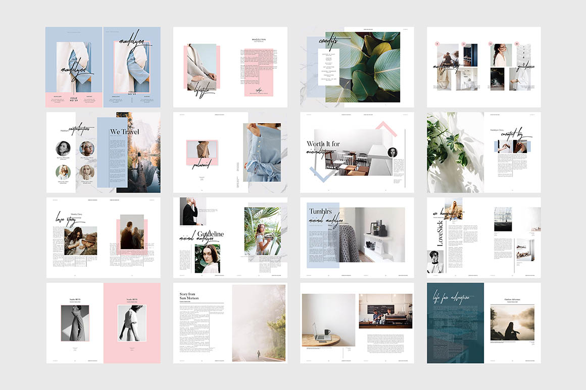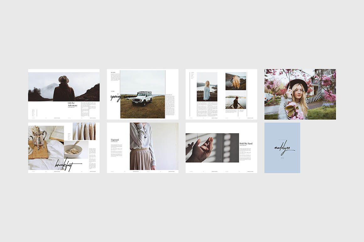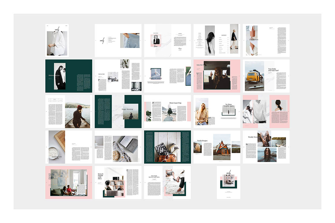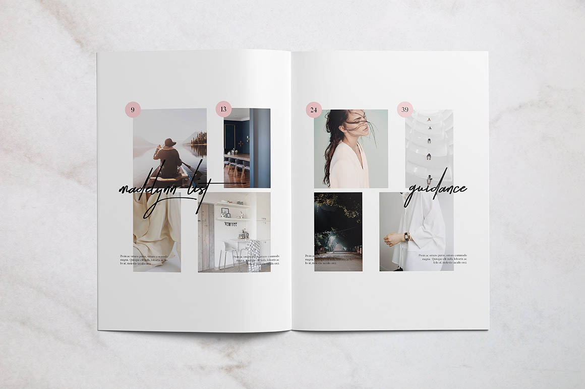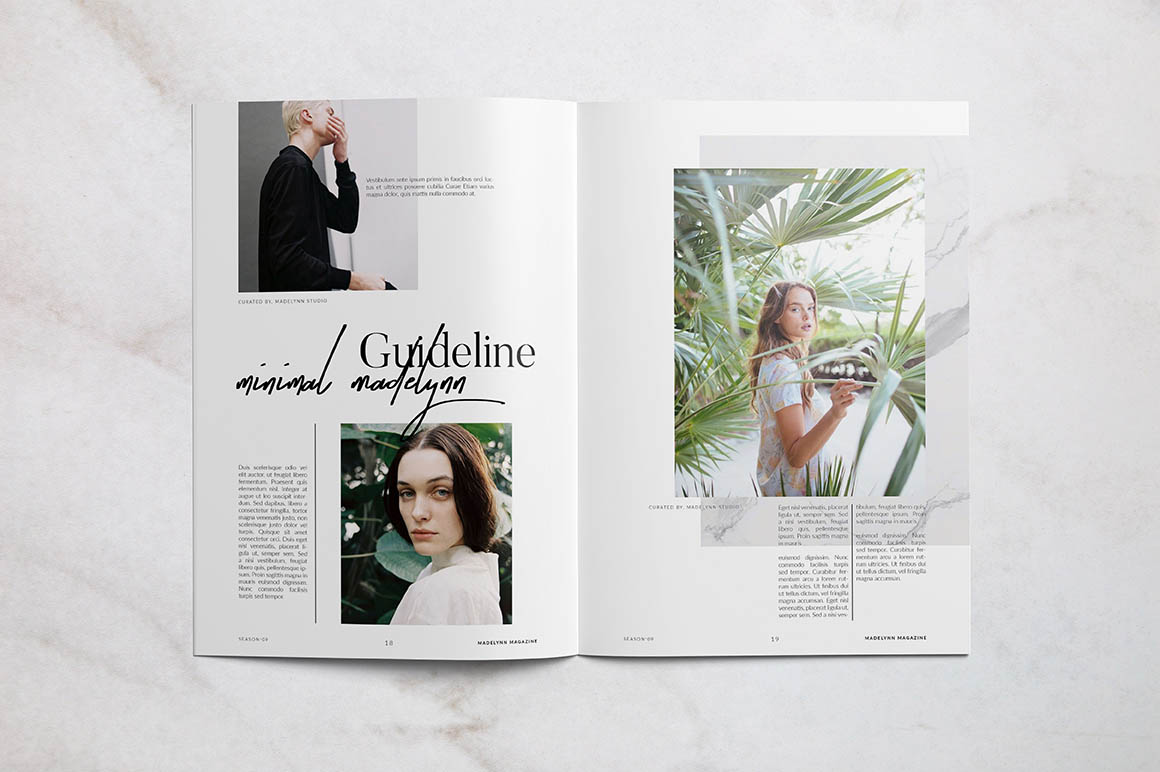 Madelynn magazine is 47 page Indesign travel, journal book magazine template with typographic and minimalist style and clean. Madelynn template cover all aspects of design including logo, color, type, web, print, values and imagery. Use Madelynn Magazine template, replace the content with your own and either send it to print (set up to print with standard size) or save it as a pdf for the client.