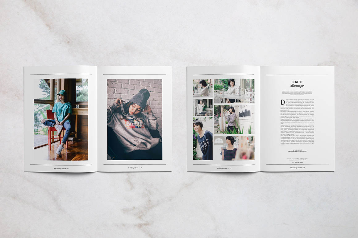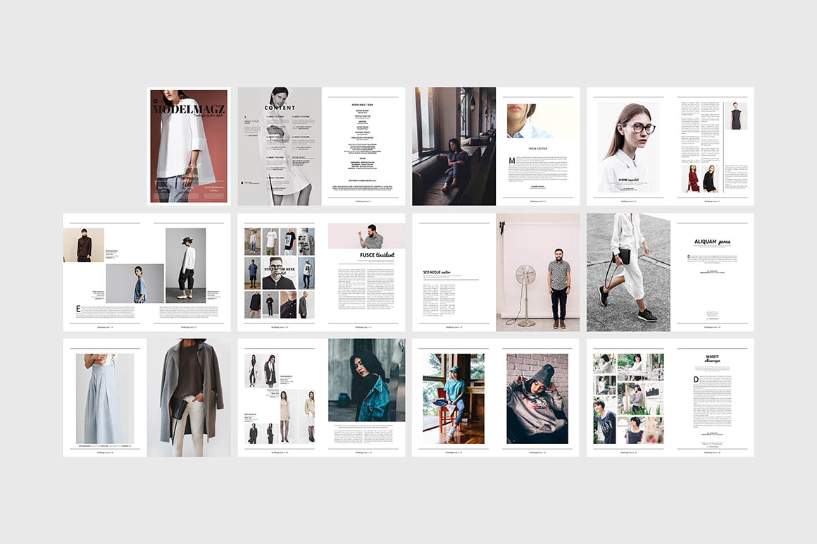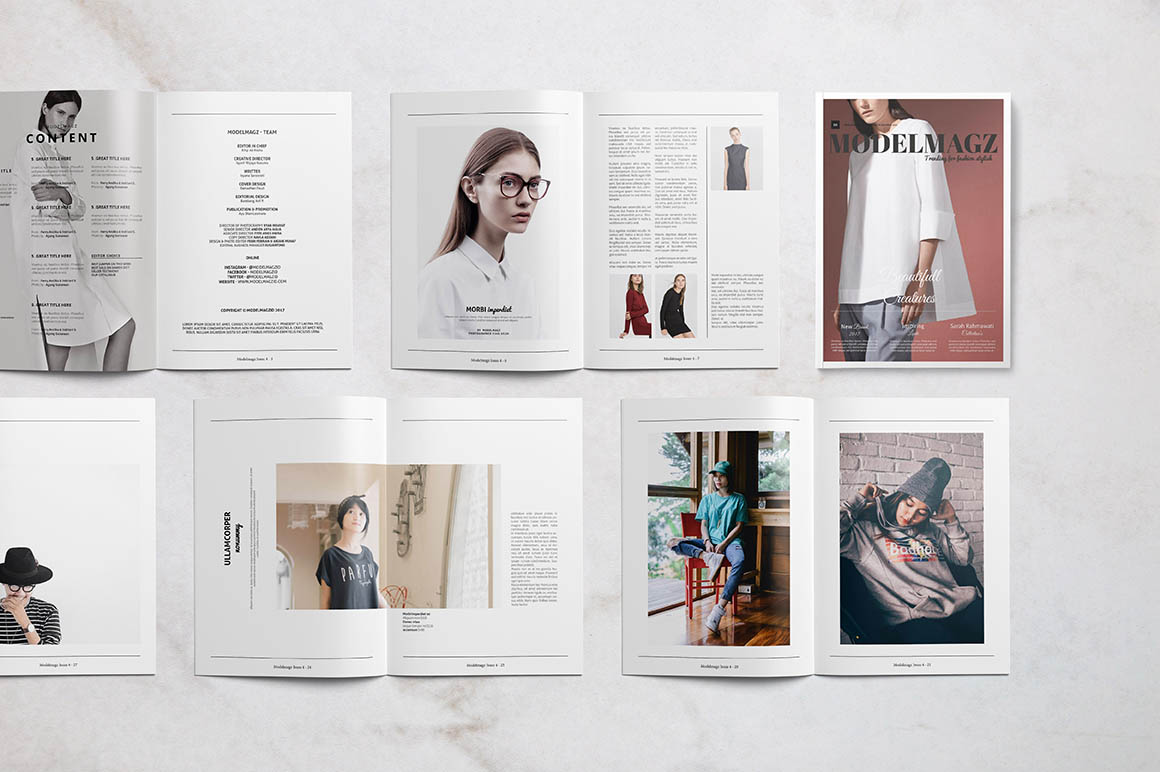 The Modelmagz is amazing feminime fashion & lifestyle magazine with 30 pages with variation layout for mix and match page. This Is for publication magazine, portfolio, photography, and more. With both size A4 & US Letter size. There are unique spread for your publication and easy to change with your own color pallete, work with master page to make automatic numbering, easy to change all text with paragraph style.