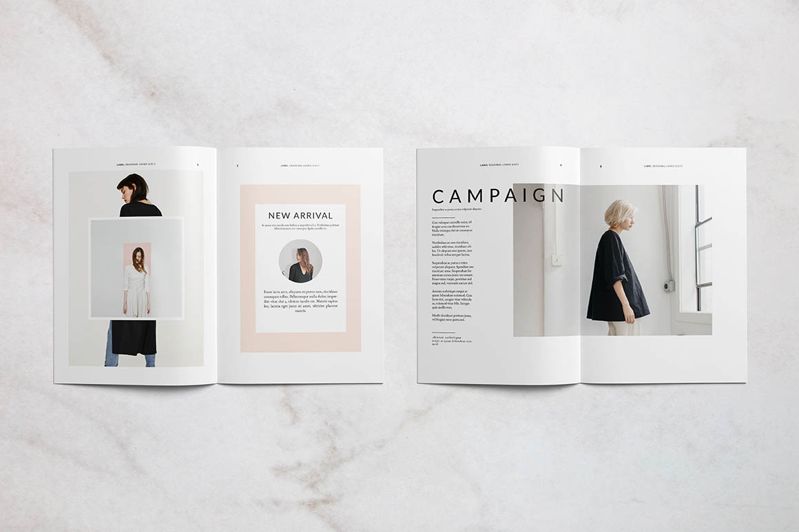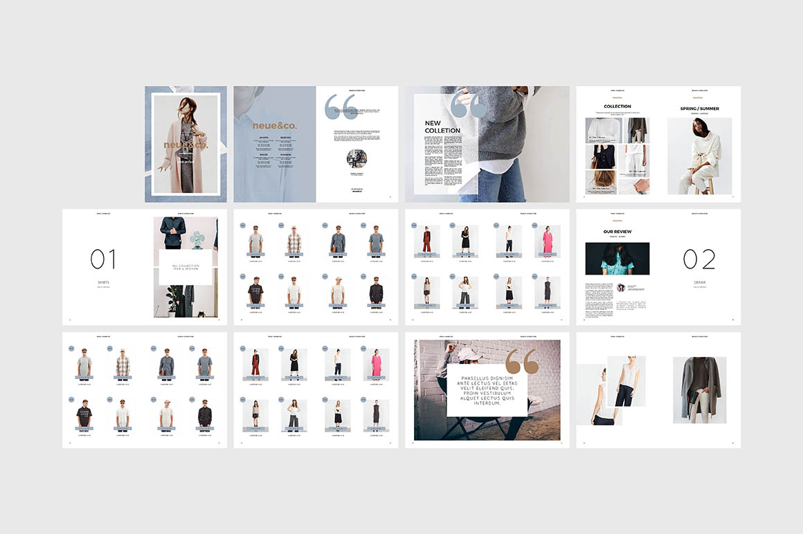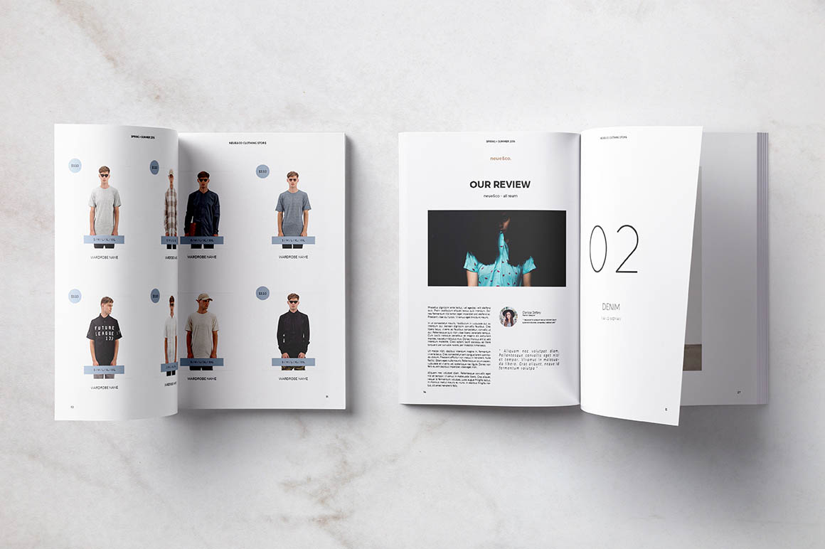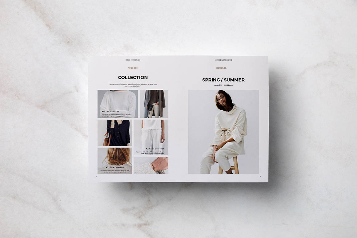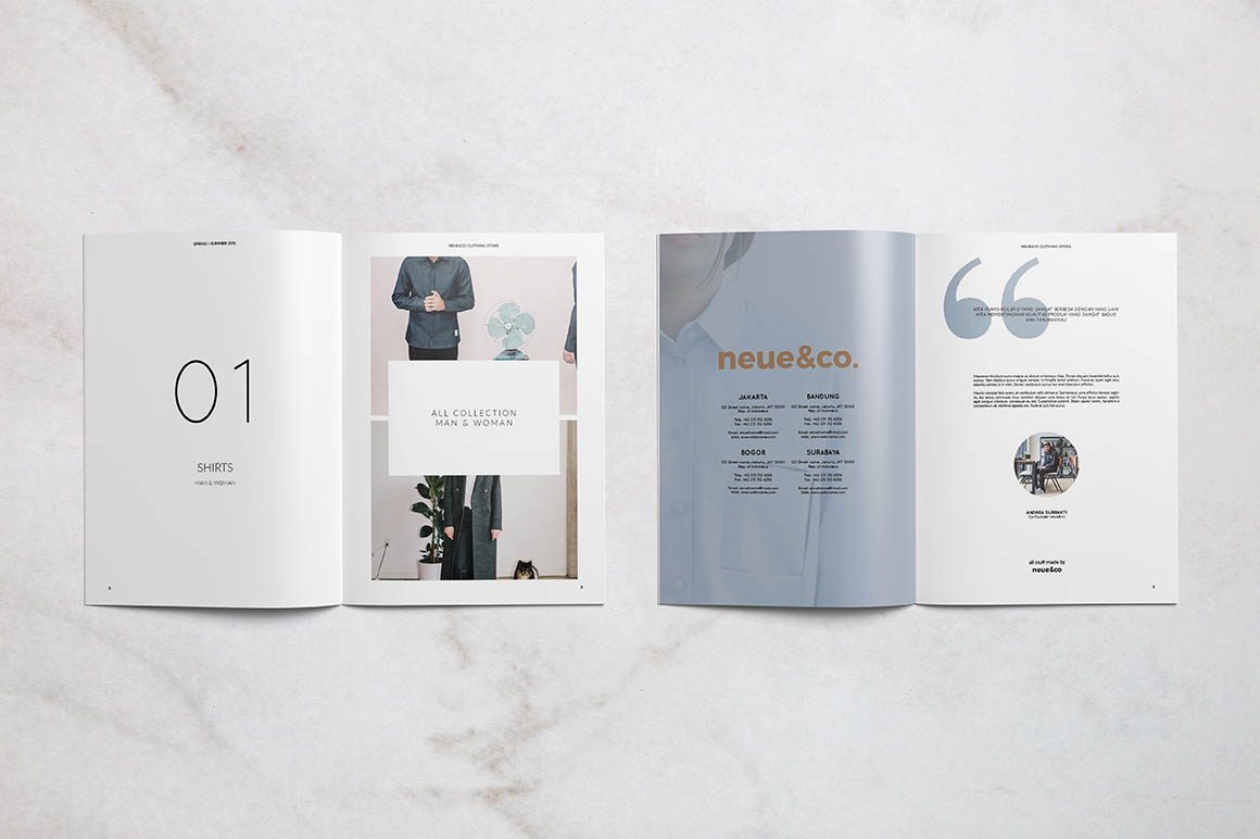Neue is fashion product and catalog/lookbook clean and minimal design. This template have 30 print page template and 2 optional size A4 & US Letter size.