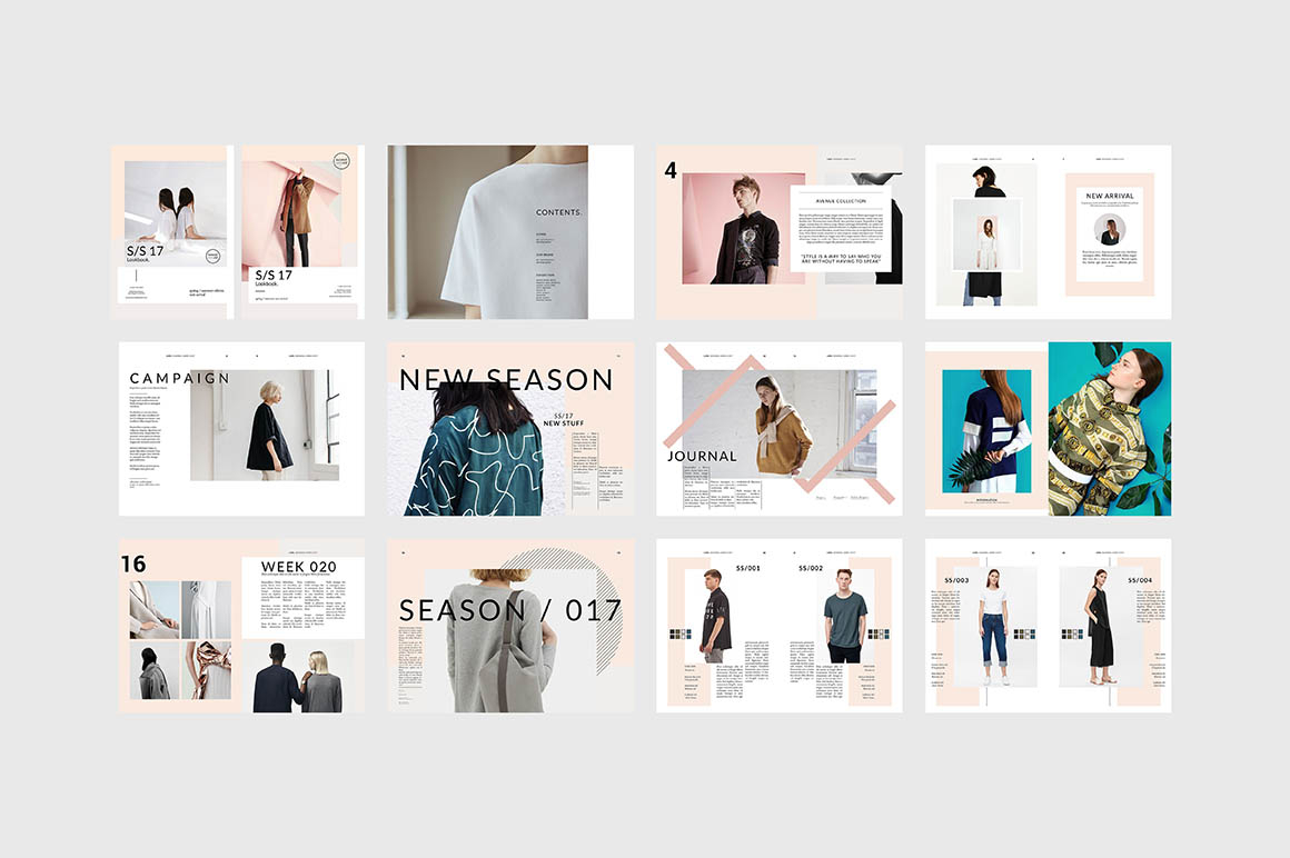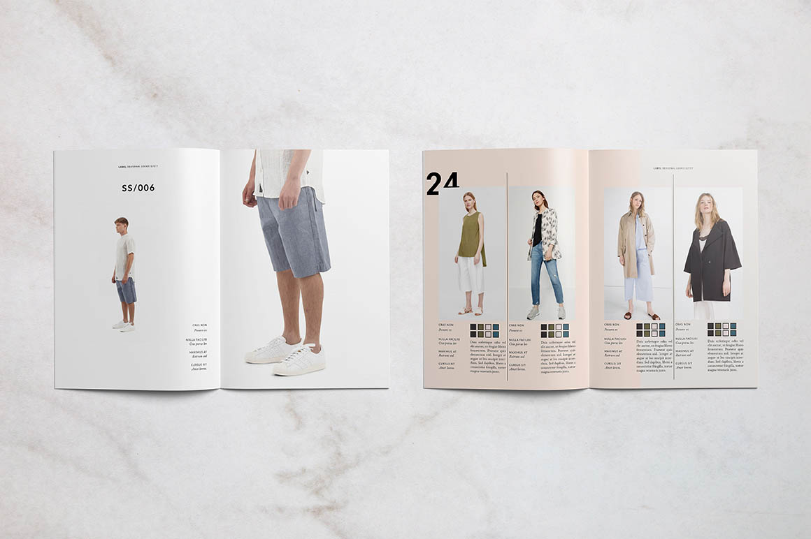 Ninth Lookbook is 40 page Indesign fashion, product/design lookbook template. Retail or Clothing store will use Lookbook to show their product to clients about new product. The Lookbook template cover all aspects of design including logo, color, type, web, print, values and imagery. Use Ninth Lookbook template, replace the content with your own and either send it to print (set up to print with standard size) or save it as a pdf for the client.