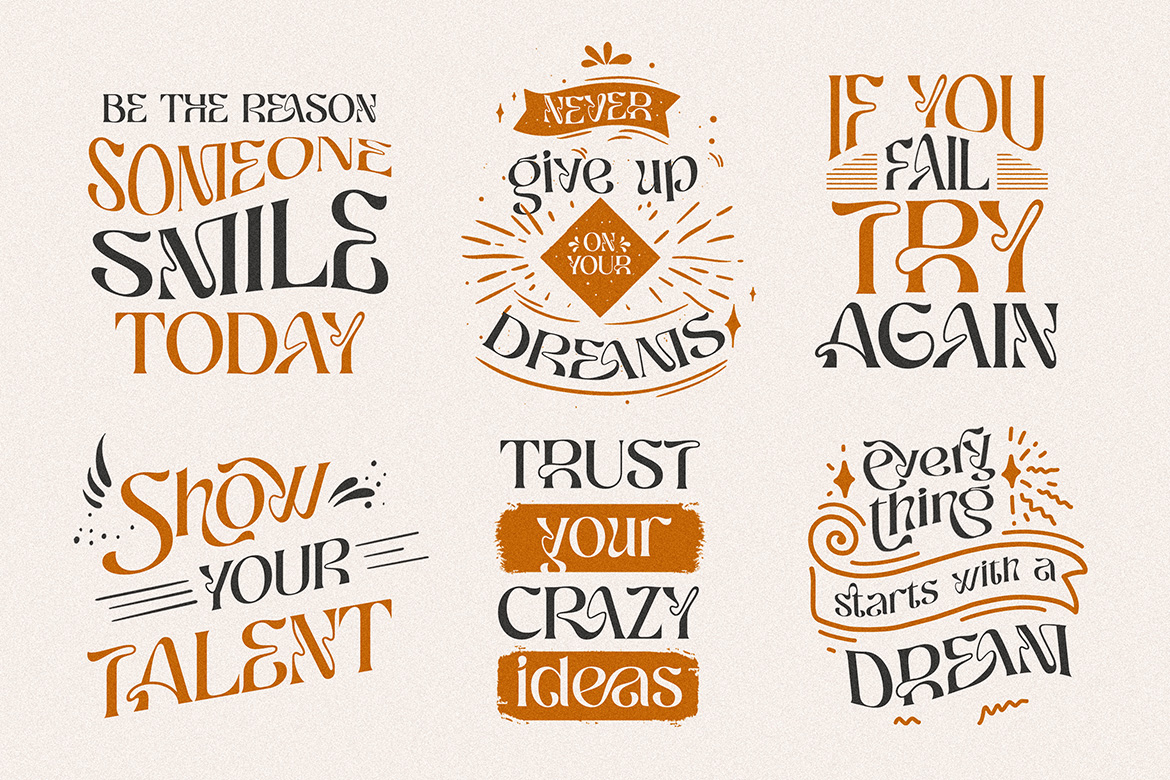 Trendy, elegant, luxury, futuristic & retro style serif & sans display fonts for your fancy projects. Elegant, artistic and unique style on these fonts will be great for any branding project. Lot of alternates and ligatures will help you to create unique and original logo design or website header! Enjoy 🙂