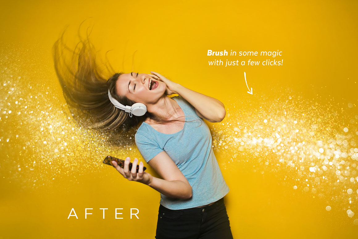 Our Stargazer Photoshop Brush Set comes with 10 unique brushes of star clusters and galaxies from far, far away… Create stunning, unique backgrounds using any color you want… Combine colors and get creative… Just one click adds an entire galaxy to your designs. Check out before/after images to see what’s possible! You can make some serious magic with these brushes 🙂