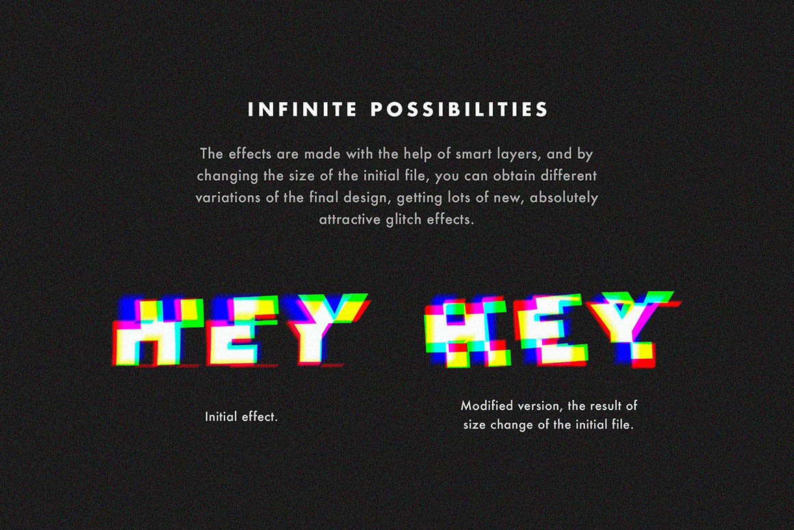 What’s inside: PSD file bringing 10 glitch text effects via Smart Objects.