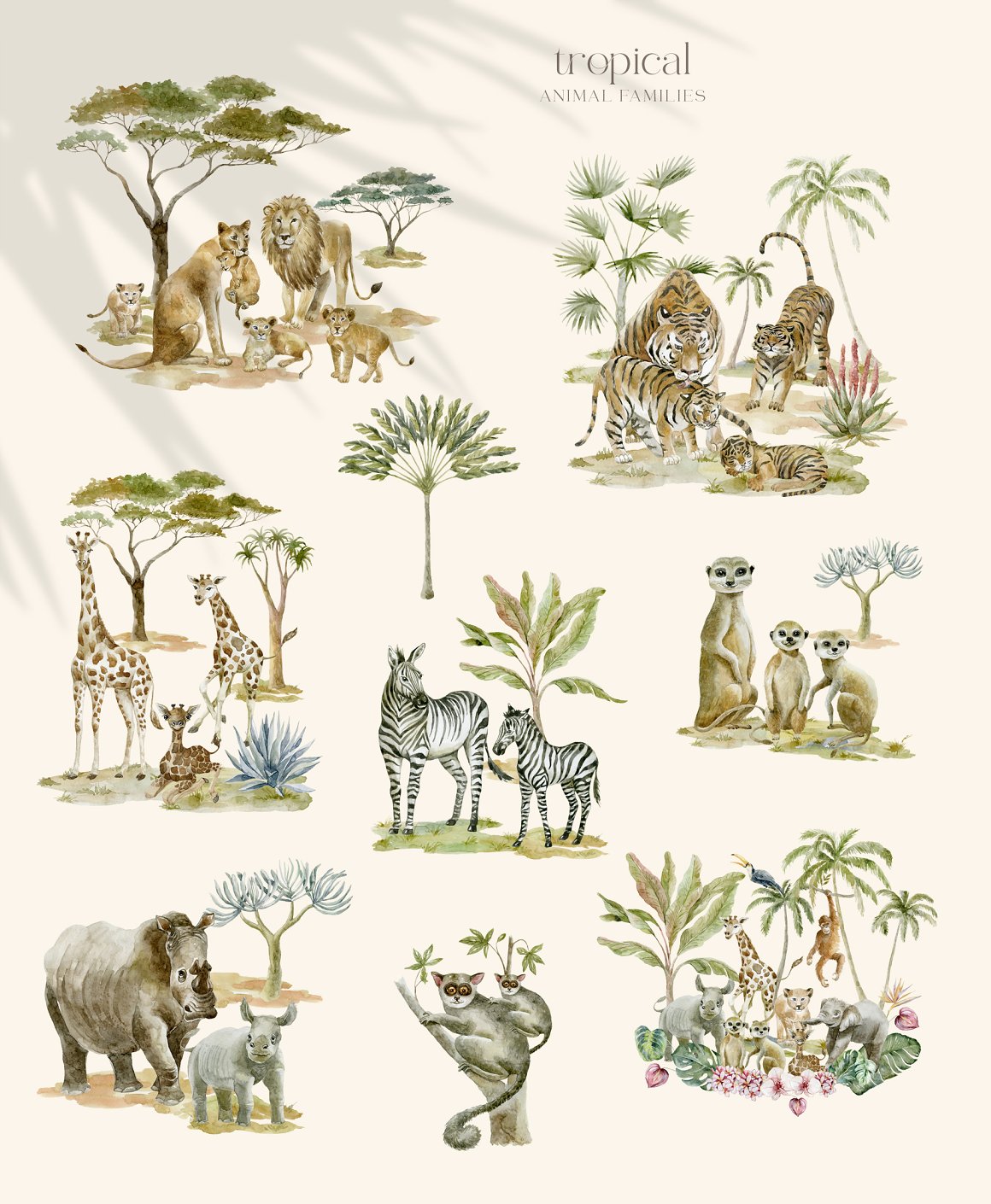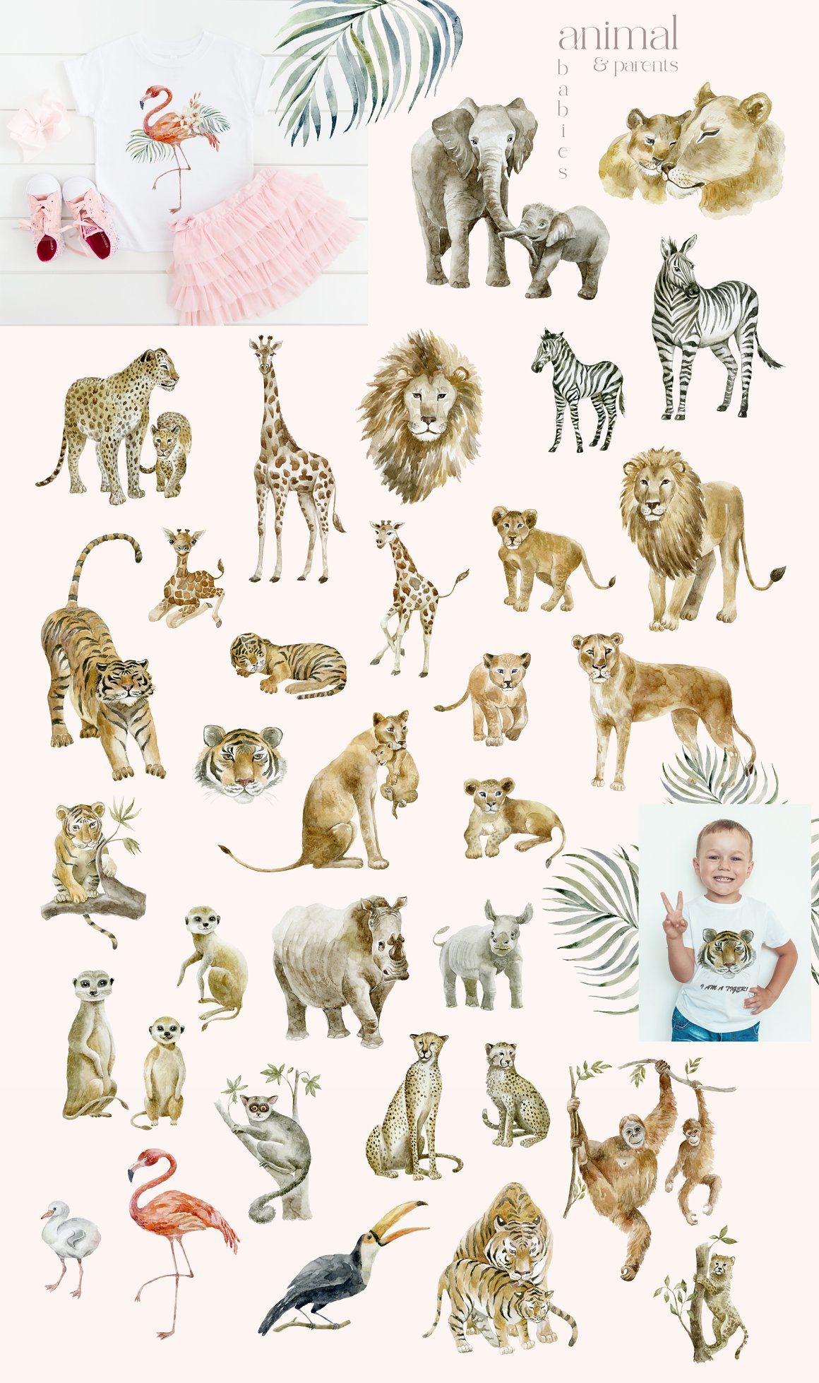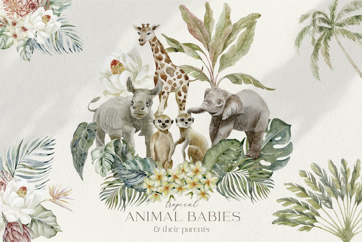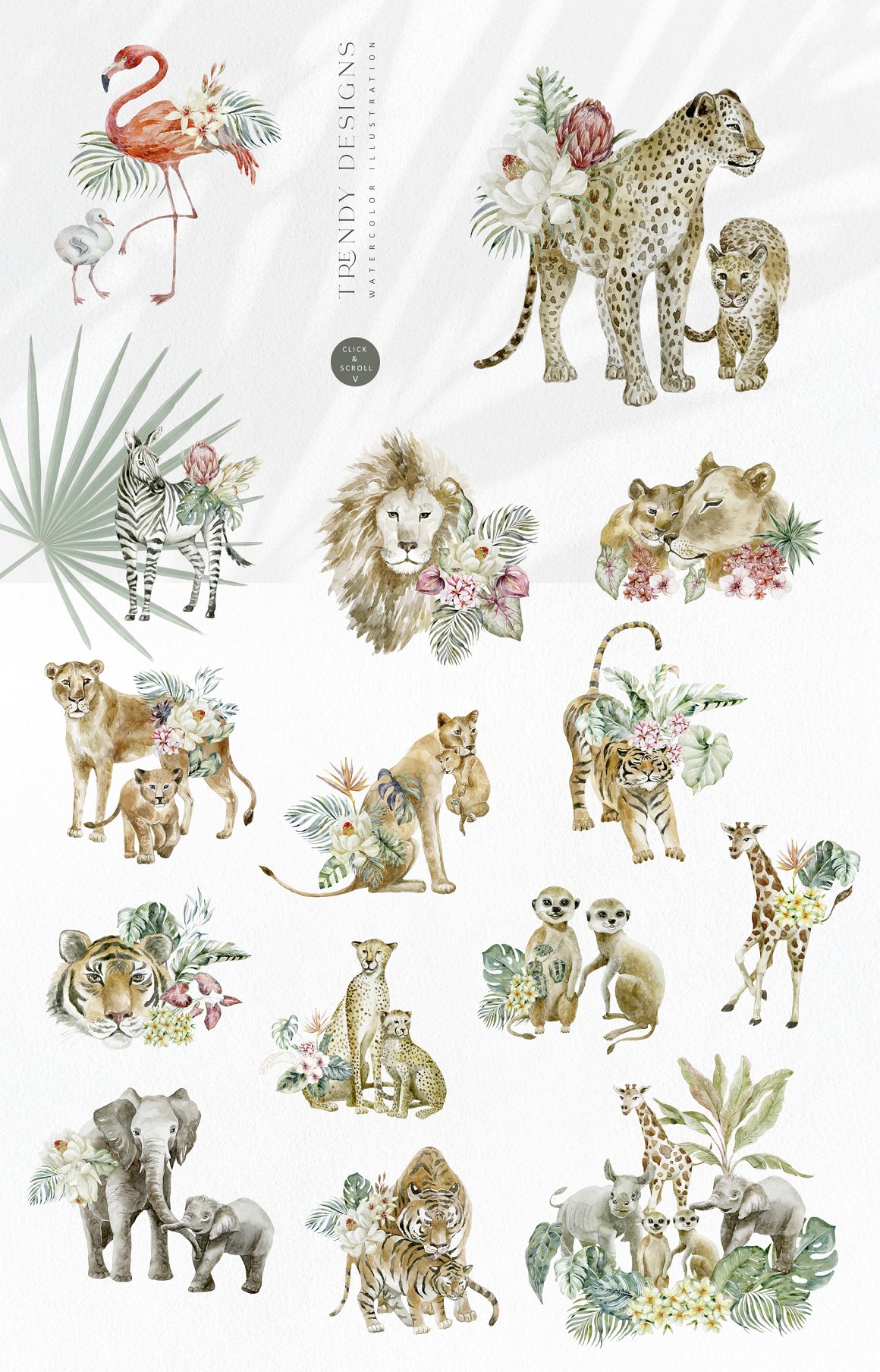 And I have a new Product : “Tropical Animal Babies & their Parents.” It’s the watercolor tropical collection with cute animals and floral illustrations. A lot of pre-made frames, designs, bouquets, patterns and design elements are included.