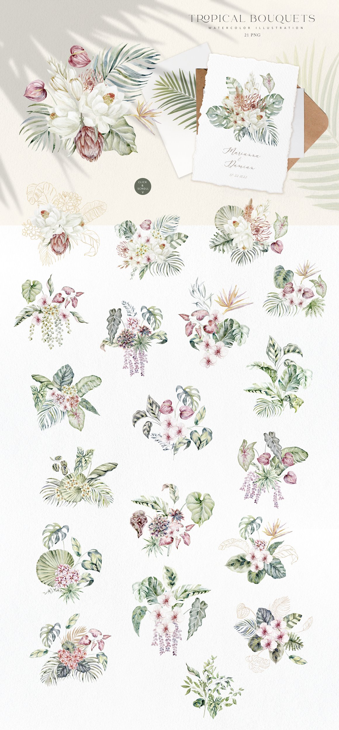 - 21 Watercolor bouguets ~4500 x 5000 px, PNG 300 dpi
