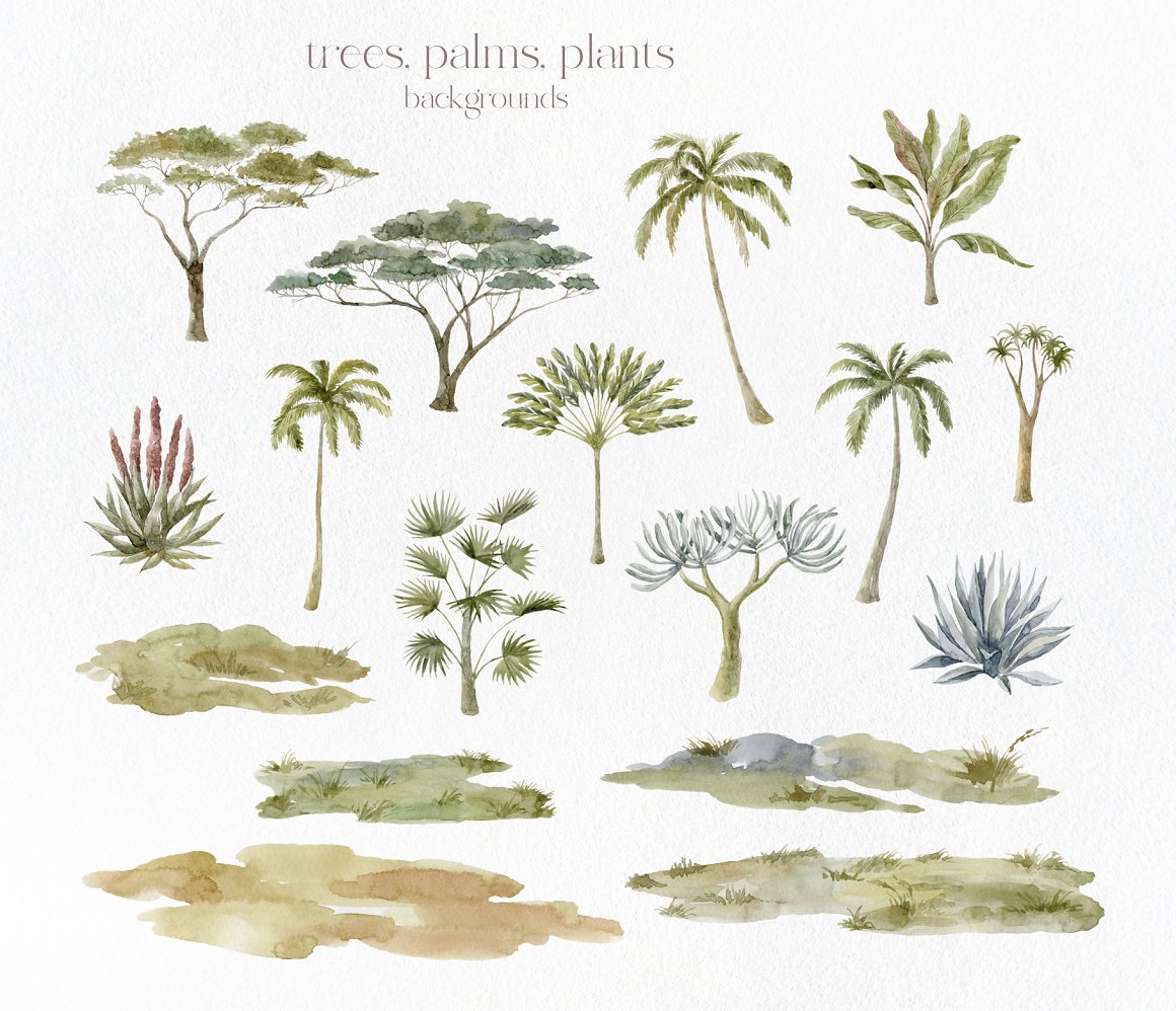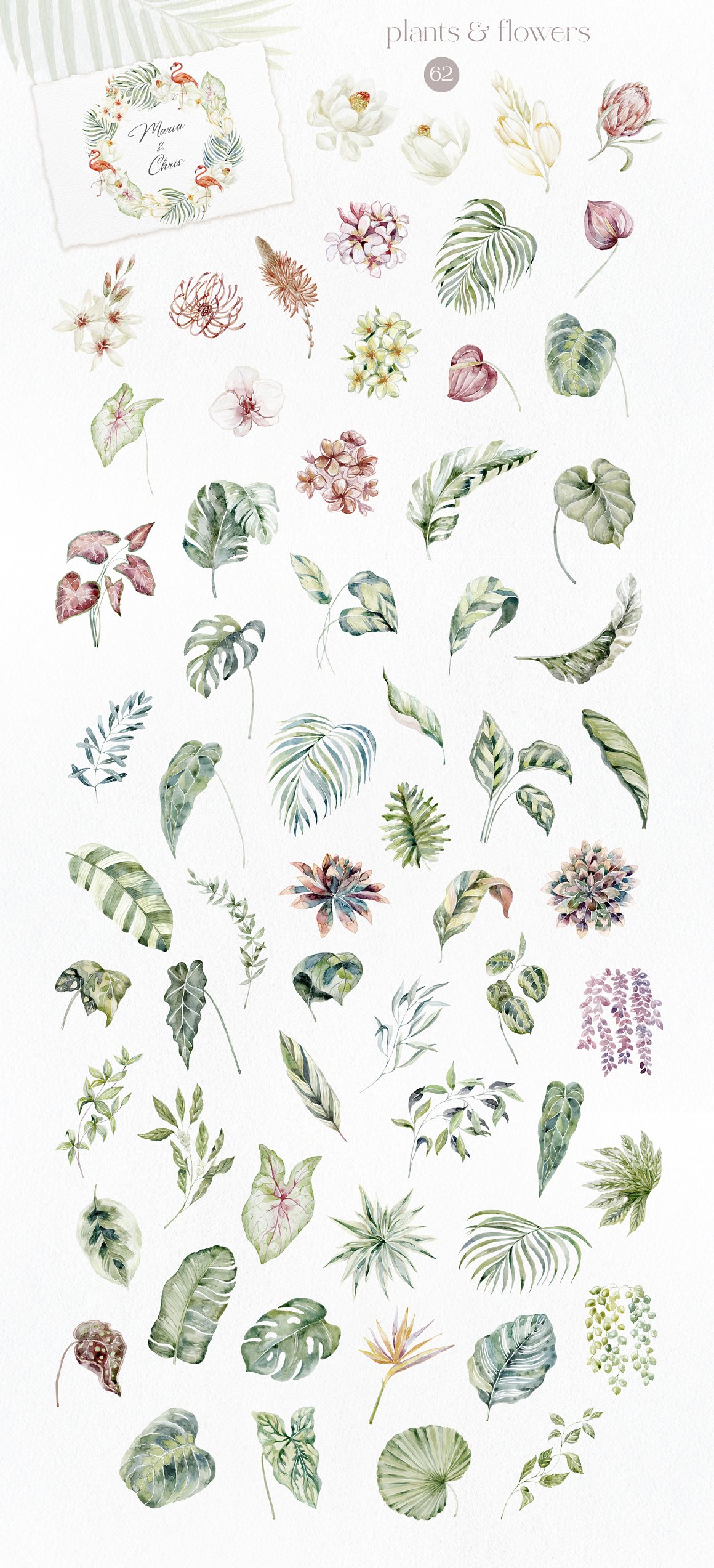 - 2 cute & tropical style illustration & graphics sets in this watercolor bundle!