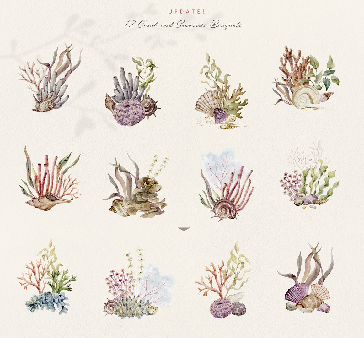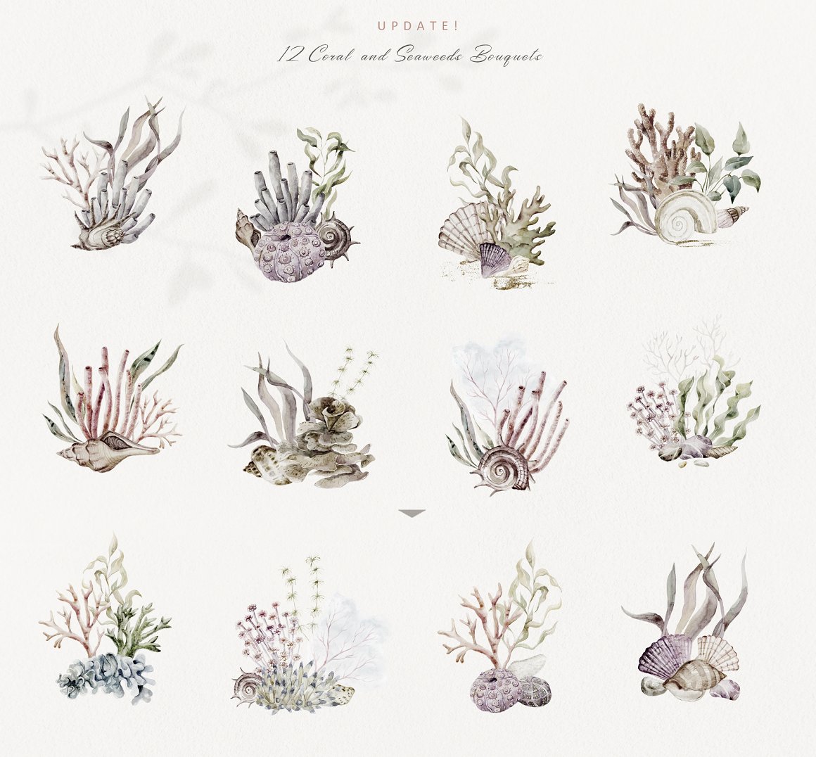 - 12 Corals and Seaweeds bouquets, PNG files, 300 dpi