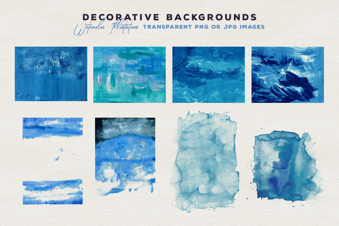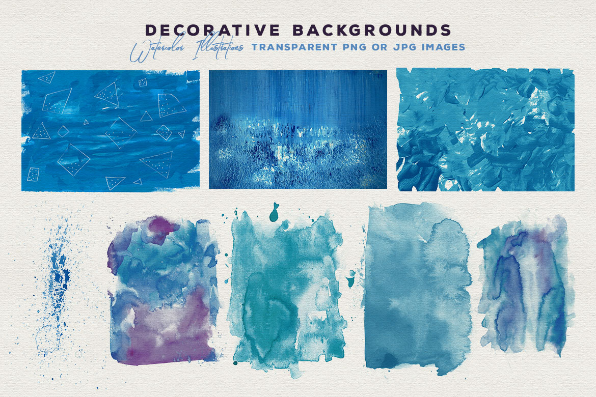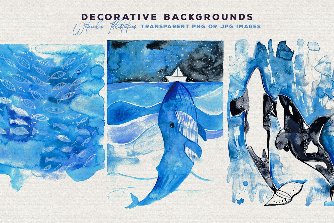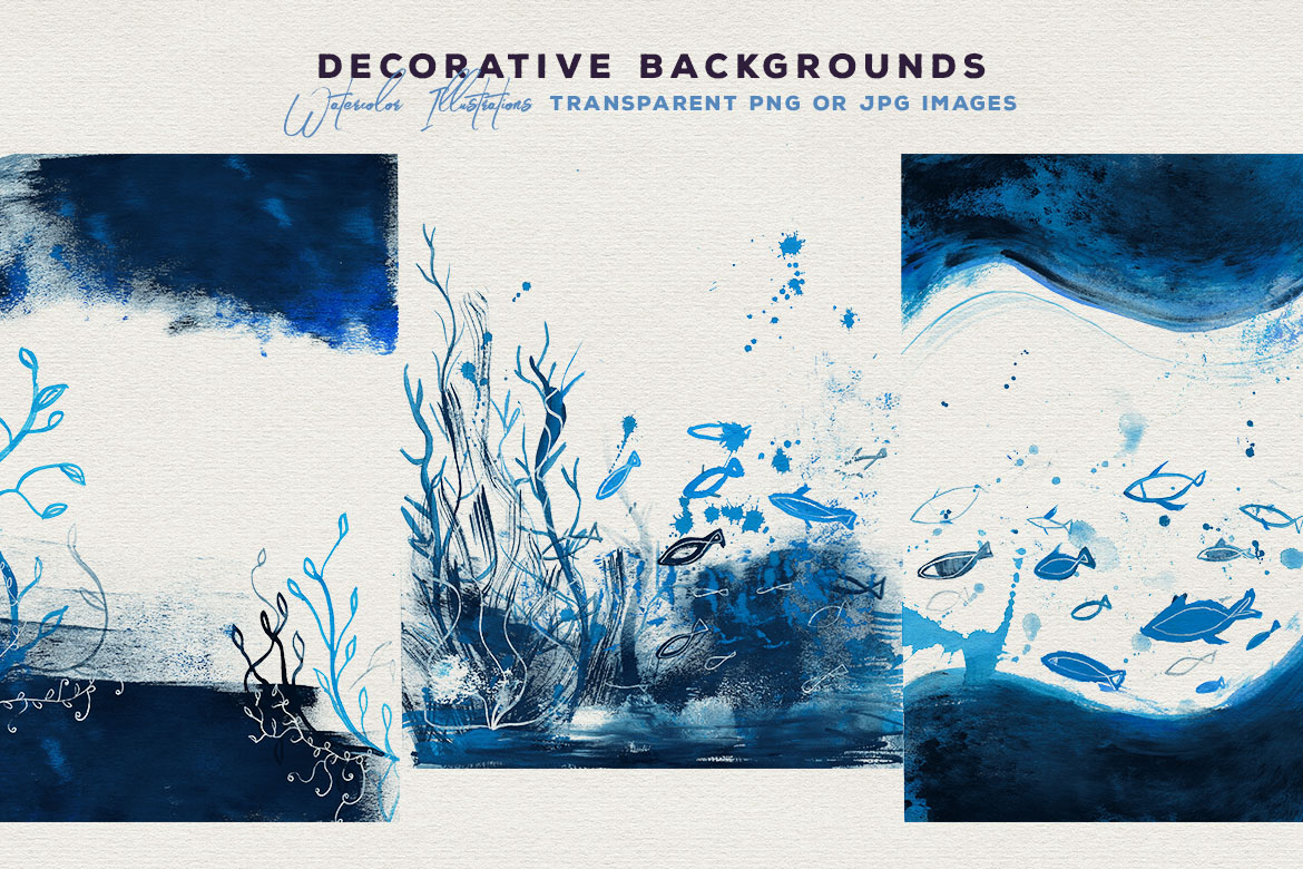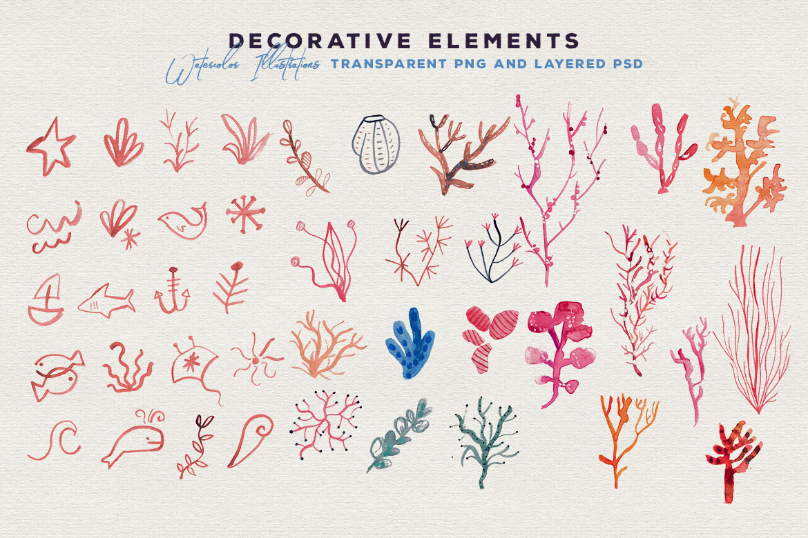 If you are looking for some unique & modern watercolor illustrations or graphic ellements then you are at the right place because here you will get a great collection of underwater world illustrations for your new artistic projects. You’ll find here a lot of illustration elements, patterns, textures & backgrounds… These graphics are in vector hi-res PNG or JPG formats so all are great for your new web design or any print design projects. Enjoy 😉