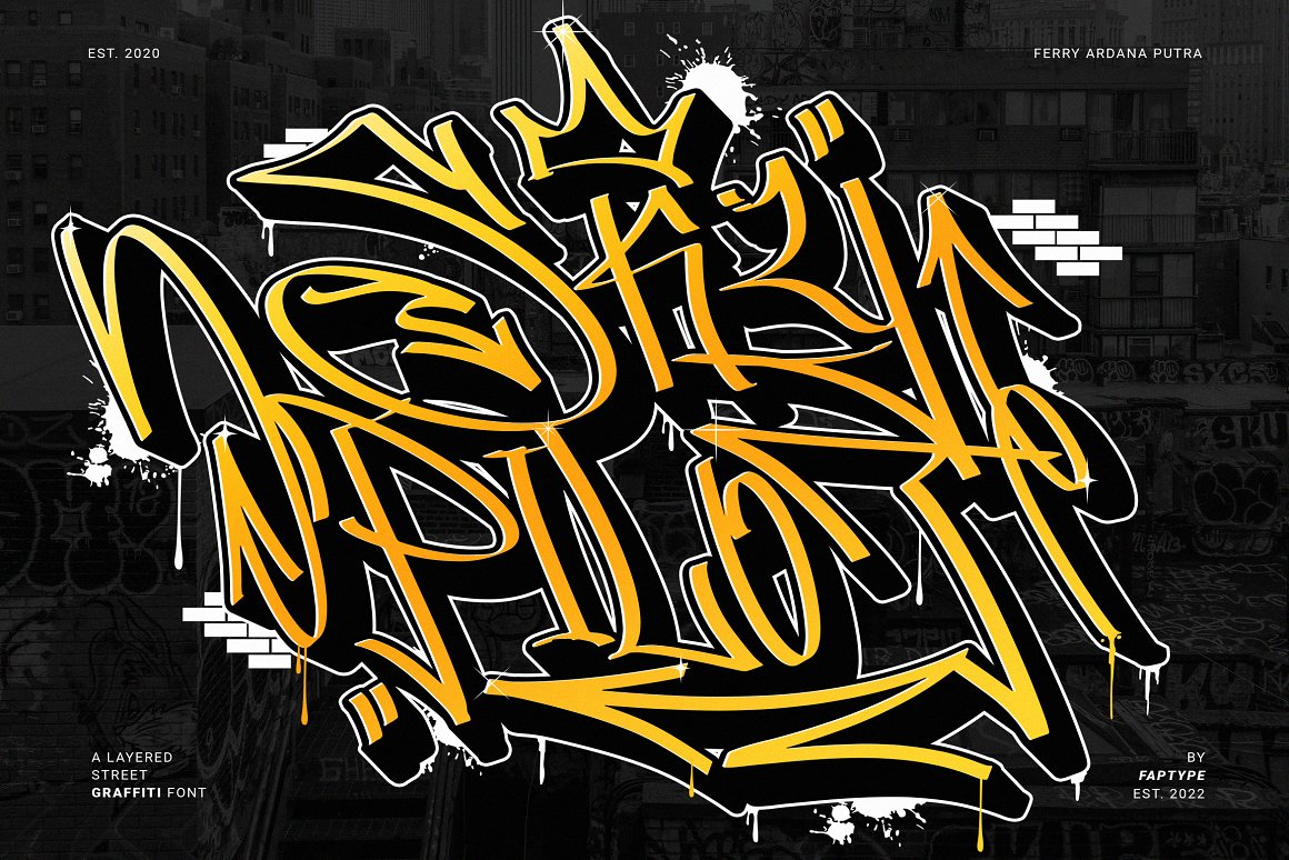 This font is font created and inspired from the street writing of New York, and generated by creative hands of graffiti addictions. It has an incredibly unique design that can be perfect for a range of creative branding and packaging projects. Take your designs to the next level with this stunning font! You can apply this font to t-shirt designs, posters, covers, video thumbnails, merchandise, wall, and so on to make it look special.