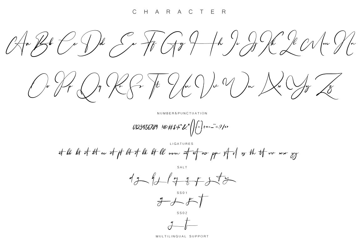 Mangollia Signature, with simple strokes and light lines makes this font look beautiful and modern. Mangolia Signature is supported with additional characters that have Alternative forms, which will help you achieve beautiful styles with your own creations.