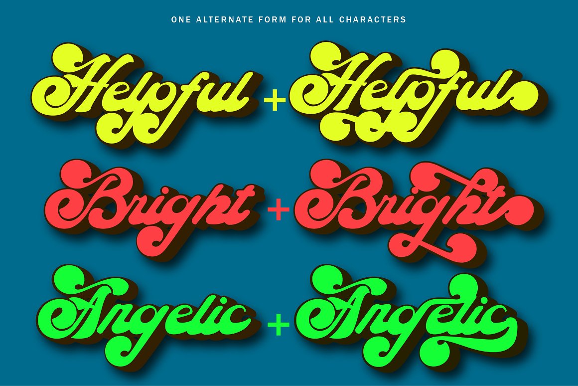 The Hipster script Retro Style Font, with smooth curves and lines makes this font lookbeautiful and realistic.With 300+ Characters,The Hipster script is also supported with additional characters that have Alternate one form for all characters, which will help you achieve beautiful styles with your own creations.