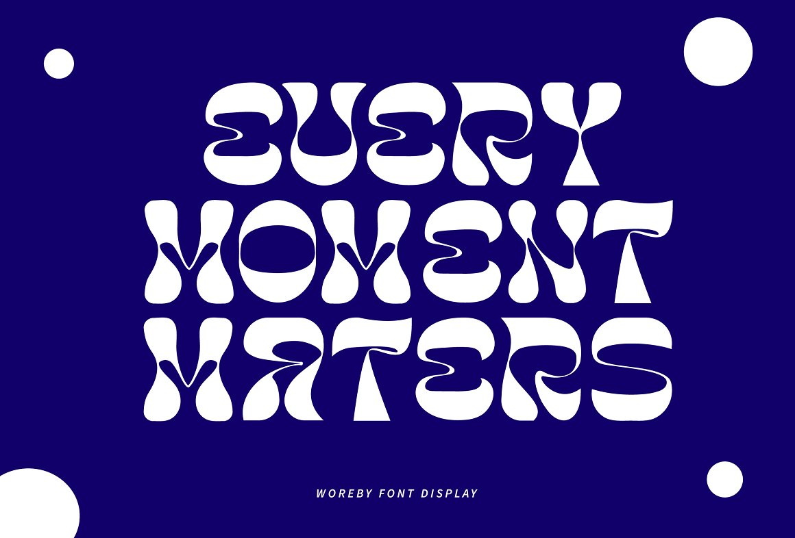 Introducing the Woreby font which has a unique looking design. This font has additional large and small arches. You can use Woreby in modern and contemporary designs, and is suitable for use in various media such as stickers, posters, covers, typography and other digital media.