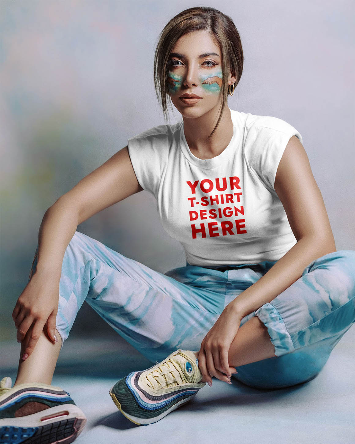 Urban style girl’s t-shirt – mock-up template in PSD format from Hyperpix. Download & enjoy 😉