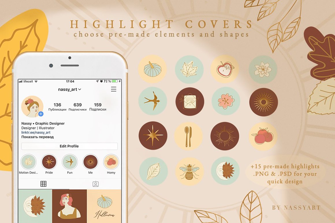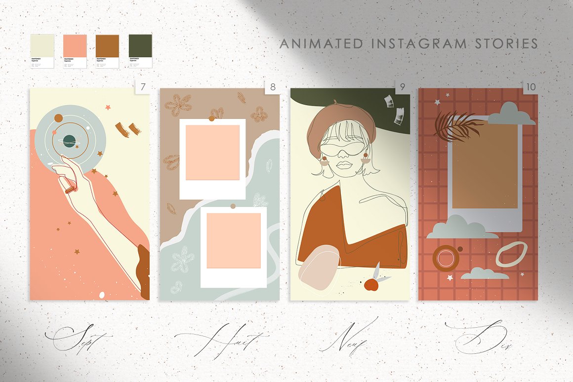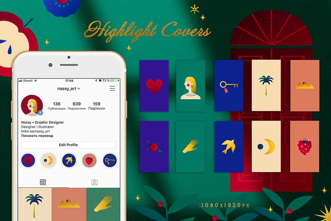 - 10 Highlights (JPG: 1080×1920 px, PSD, 300 dpi) – Change color and illustration from the kit