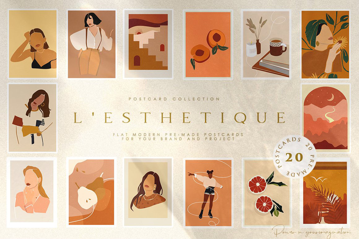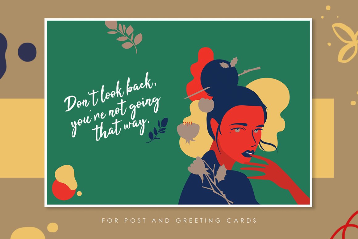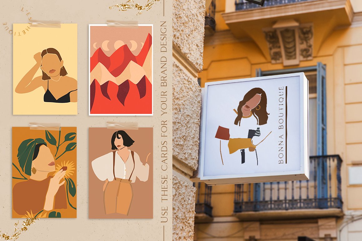 Abstract Woman Modern Postcard Set – Decorate your wall with this collection of modern&fashion postcards, use them for posts in Instagram and your projects. Use these elements to create your own unique Instagram account design or branding. You just need to select card and crop it, combine other provided items or add a quote on the empty space. And the personal card will be ready! In this pack, you can find a variety of fashionable arts and abstract modern illustrations. They are available to mix and match for design projects with endless composition combinations of all pieces. These elements are ideal for the creation of printed products: notebooks, invitations, personal postcards, branding identity and Instagram posts. Add these beautiful vector graphics to create your own interesting profile, branding style, send cards to your best friends, present for someone important or decorate your working place with the wall posters.