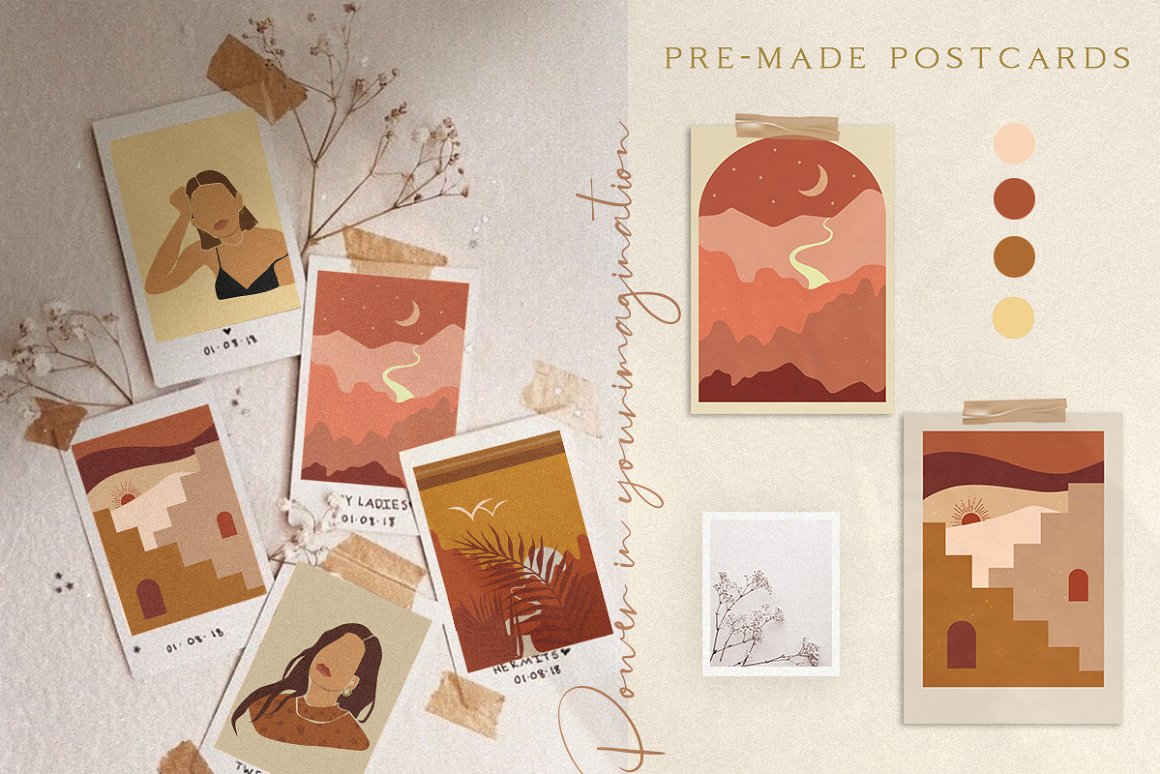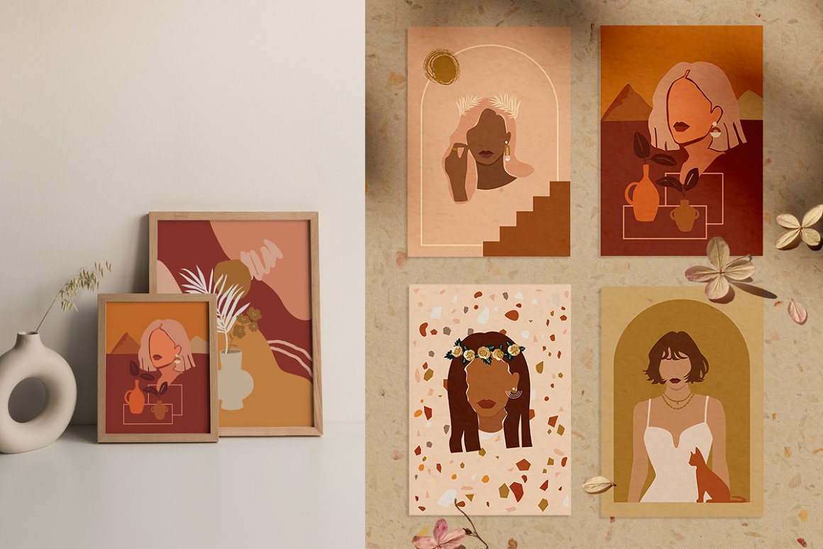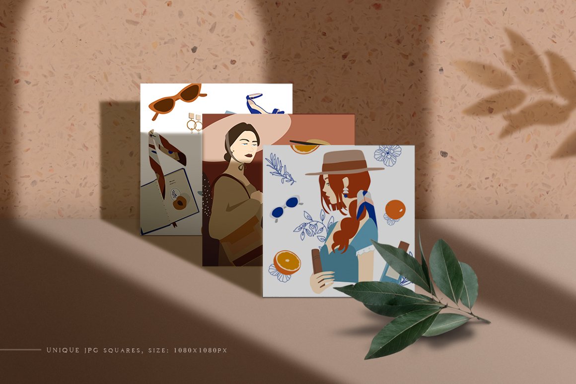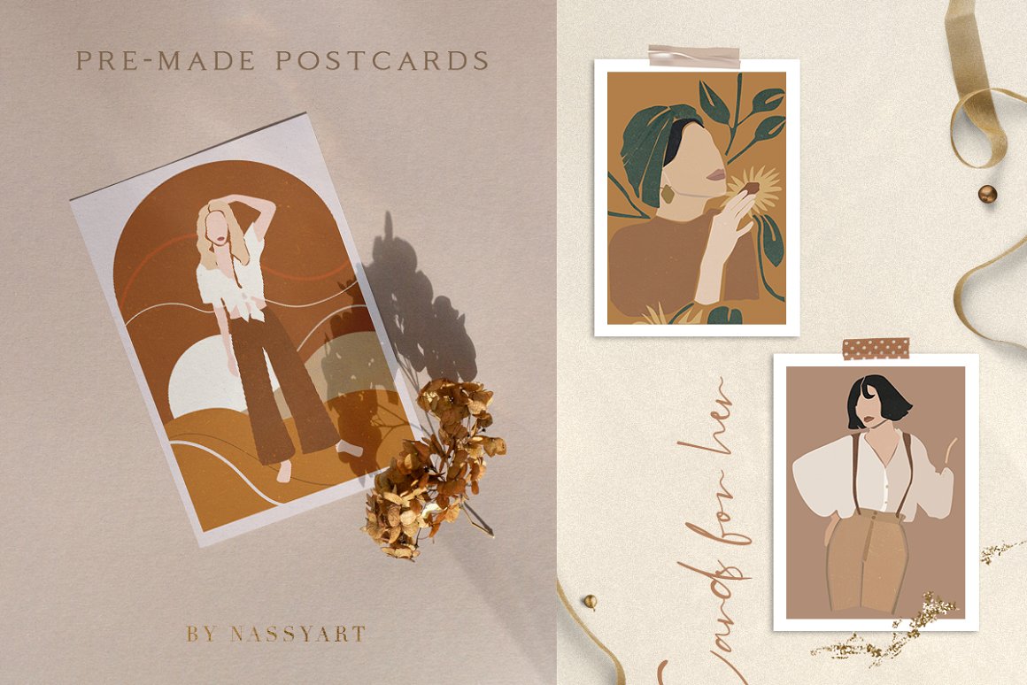 Abstract Woman Modern Postcard Set – Decorate your wall with this collection of modern&fashion postcards, use them for posts in Instagram and your projects. Use these elements to create your own unique Instagram account design or branding. You just need to select card and crop it, combine other provided items or add a quote on the empty space. And the personal card will be ready! In this pack, you can find a variety of fashionable arts and abstract modern illustrations. They are available to mix and match for design projects with endless composition combinations of all pieces. These elements are ideal for the creation of printed products: notebooks, invitations, personal postcards, branding identity and Instagram posts. Add these beautiful vector graphics to create your own interesting profile, branding style, send cards to your best friends, present for someone important or decorate your working place with the wall posters.