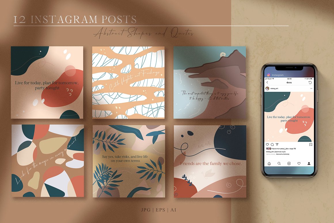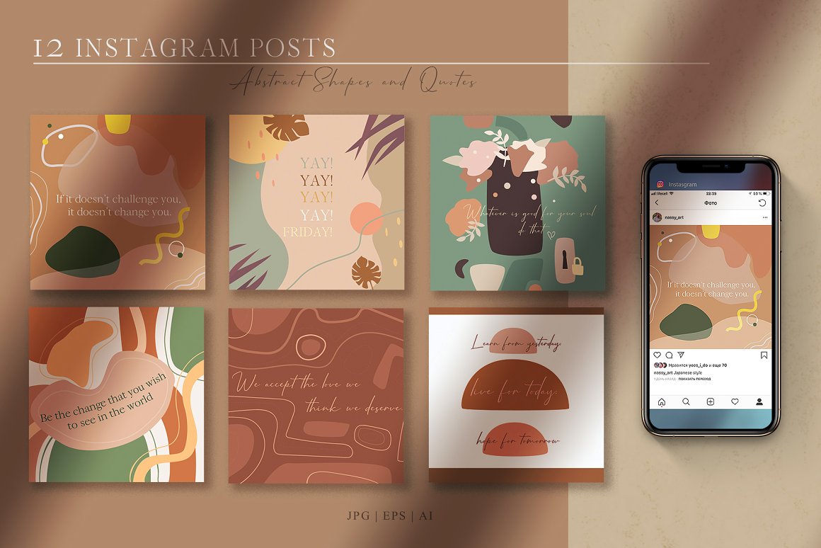 - 12 Square Posts with quotes ( AI | JPG | EPS : 1080×1080 px, 72 dpi for inst )