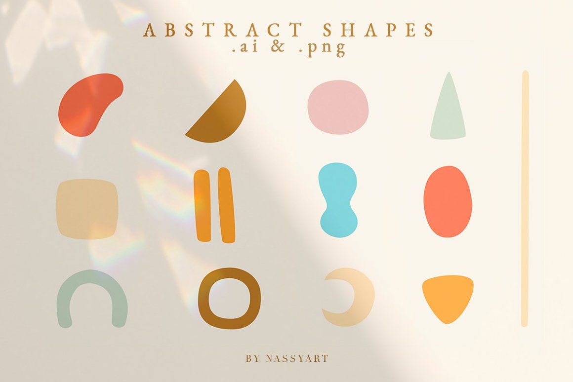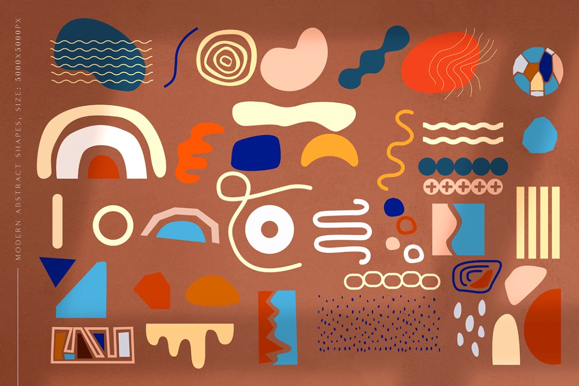 - 26 Abstract Shapes (PNG: 5000×5000 px, AI, 300 dpi) – 13 with textures and 13 colorful