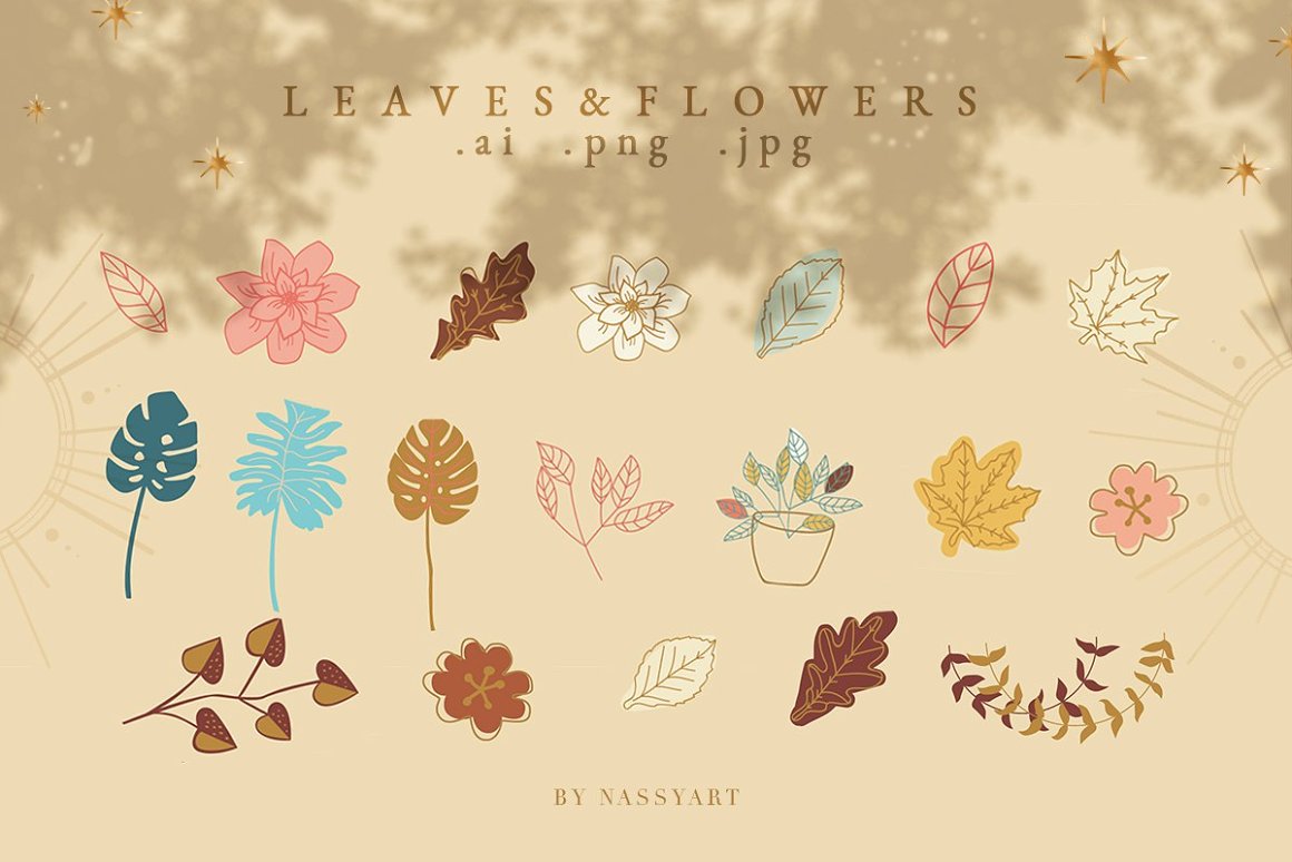 - 19 Leaves&Flowers (PNG: 5000×5000 px, AI, 300 dpi)