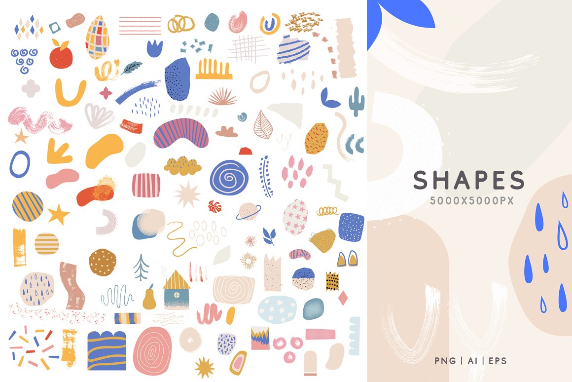 - 100 Shapes and elements (AI | EPS | PNG: 5000×5000 px, 300 dpi)