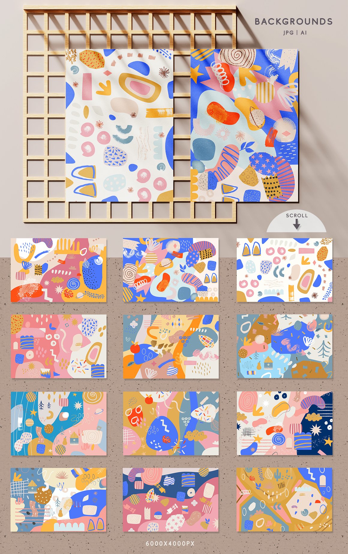 - 12 Backgrounds (AI | JPG: 6000x4000px, 300 dpi)