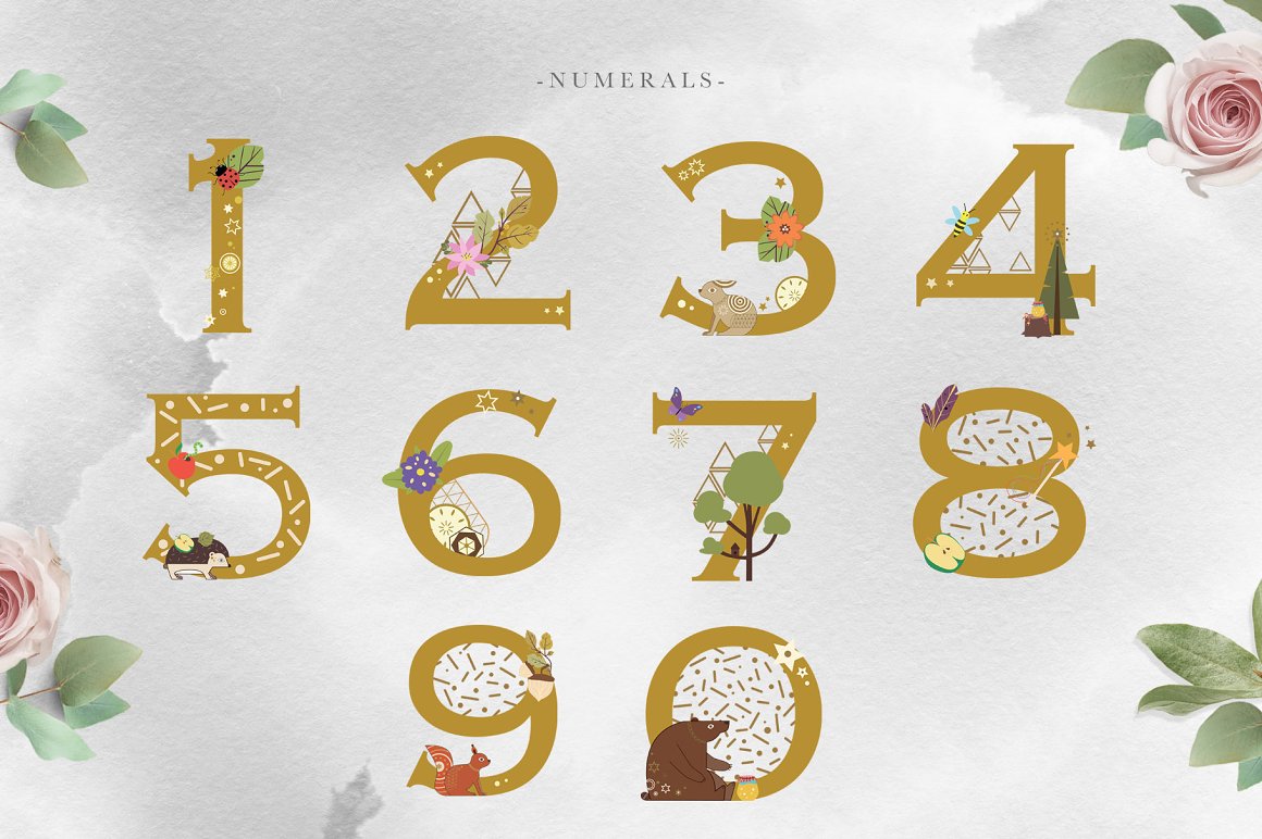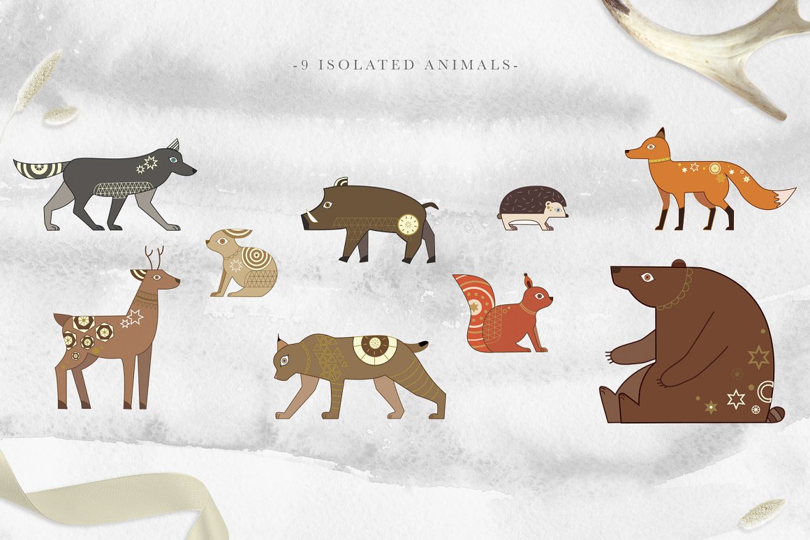 Folk Tale Collection – A fabulous set of illustrations with animals and decorative elements, such as: alphabet letters, numerals, frames, backgrounds, seamless patterns, cartoon trees and more. Use these elements to create your own branding design. You just need to select an element, combine other provided items and сhoose a pattern or background. And branding will be ready! This collection contains many ready-made graphics so possibilities are endless! Be sure to click on the image to see all elements. These elements are ideal for the creation of the children’s books and childish printed products. Add this beautiful vector graphics and patterns to create a postcard and invitations.
