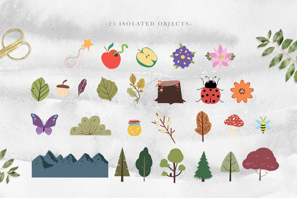 - 25 Nature objects (ai, PNG, JPG: 20000×20000 pixels, 300 dpi)