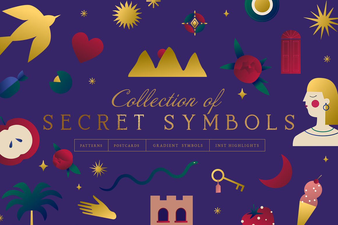 Gradient Vector Kit of Symbols – Create creative branding with this gradient vector branding kit of colorful abstract shapes and pre-made postcards. This pack contains pre-made objects such as symbols and stars, seamless patterns, highlights for Instagram, postcards, celestial elements and isolated creative abstract shapes. Use these elements to create your own unique branding design. You just need to select an element, combine other provided items and сhoose a pattern or background. And your project will be ready! In this kit, you can find a variety of line illustrations, modern abstract forms and patterns. They are available to mix and match for design projects with endless composition combinations of all pieces. These elements are ideal for the creation of printed products: notebooks, invitations, wallpaper, wrapping paper, textiles and design of your inst account or web site. Add these beautiful vector graphics and patterns to create your own brand or diversify your Instagram tape.