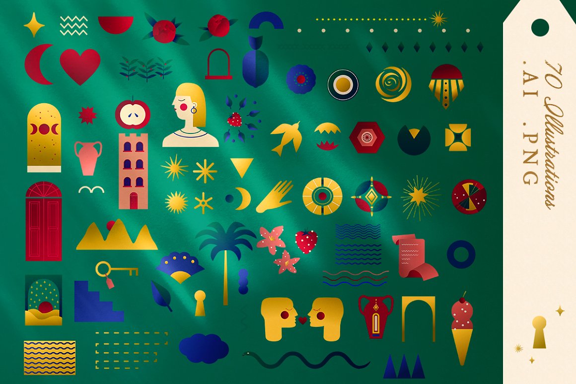 - 55 illustrations (ai, PNG: 5000×5000 px, 300 dpi)