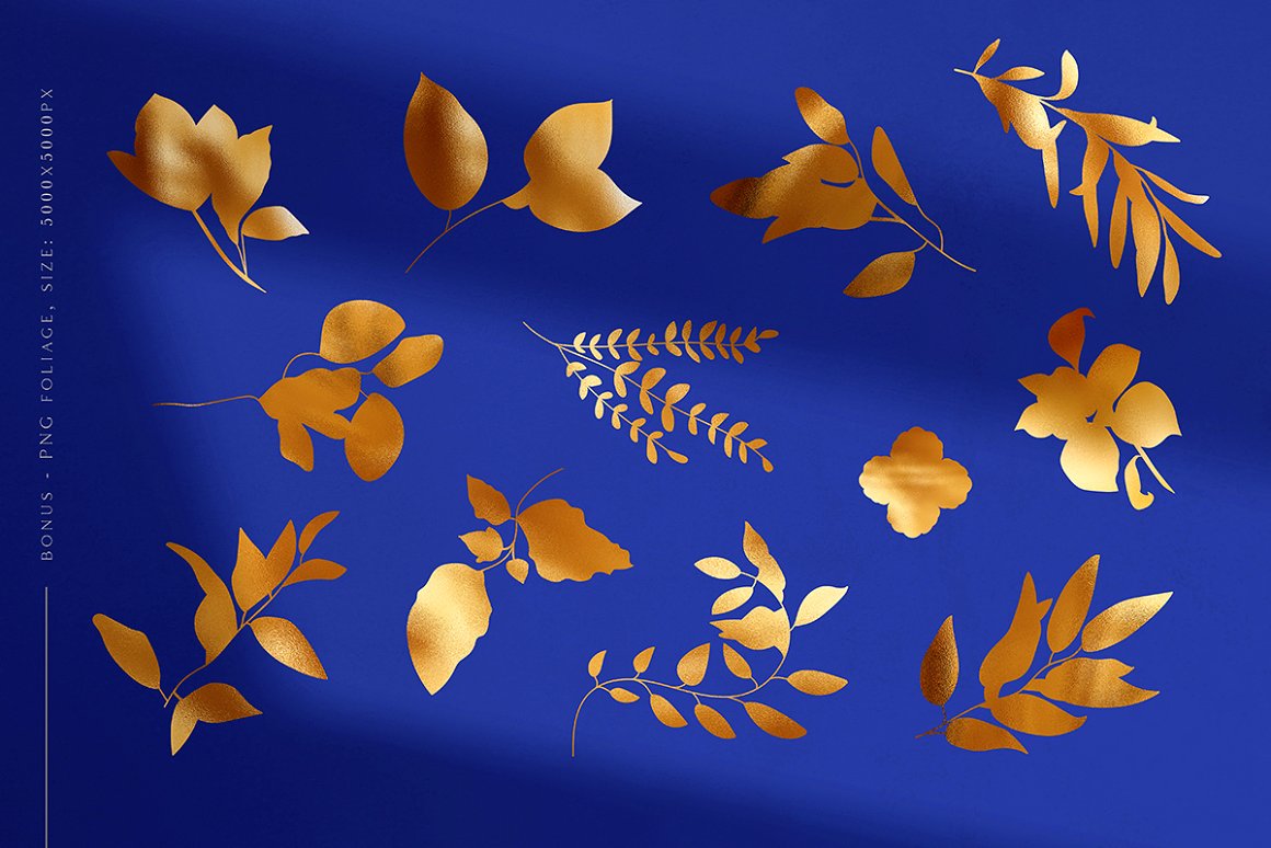- 12 Gold/Blue Silhouette Foliage (PNG: 5000×5000 px, 300 dpi)