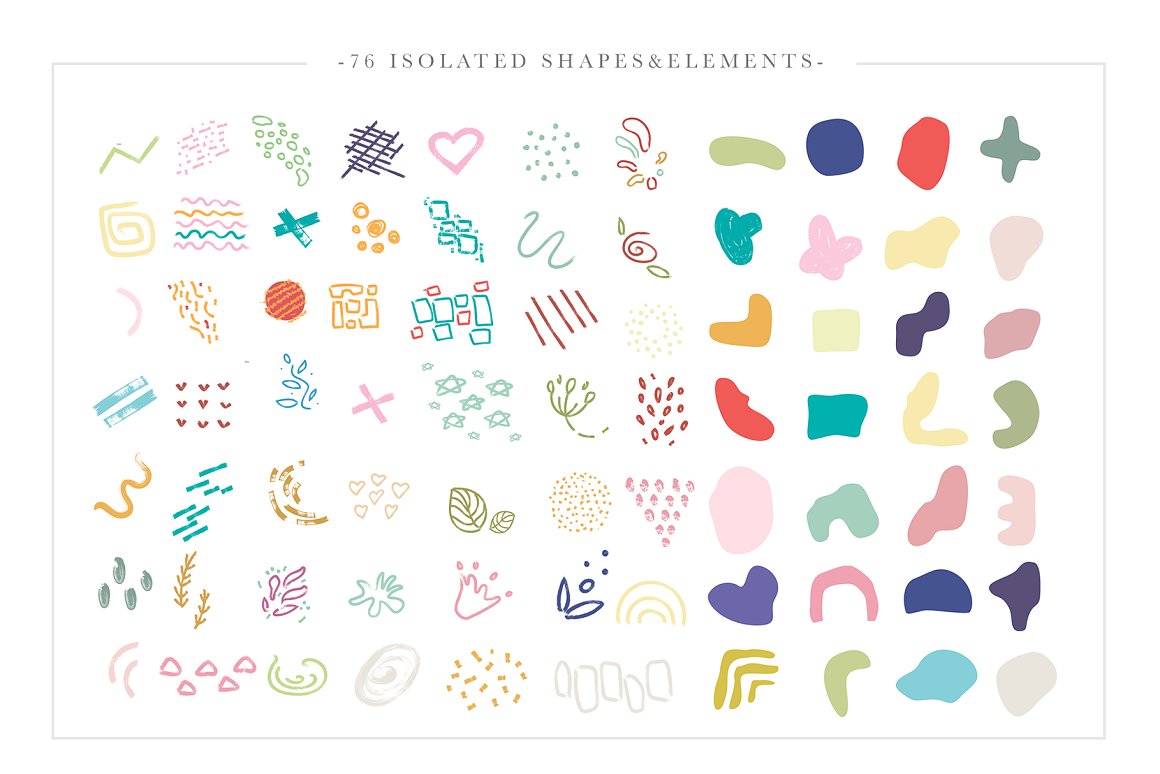 - 76 Shapes and elements (ai, eps, PNG, JPG: 3000×3000 px, 300 dpi)
