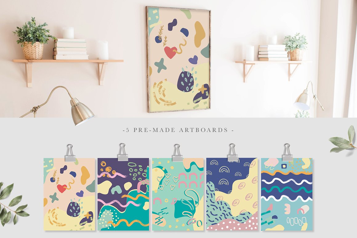 - 5 Pre-made artboards (A4 format, JPG, 300 dpi)