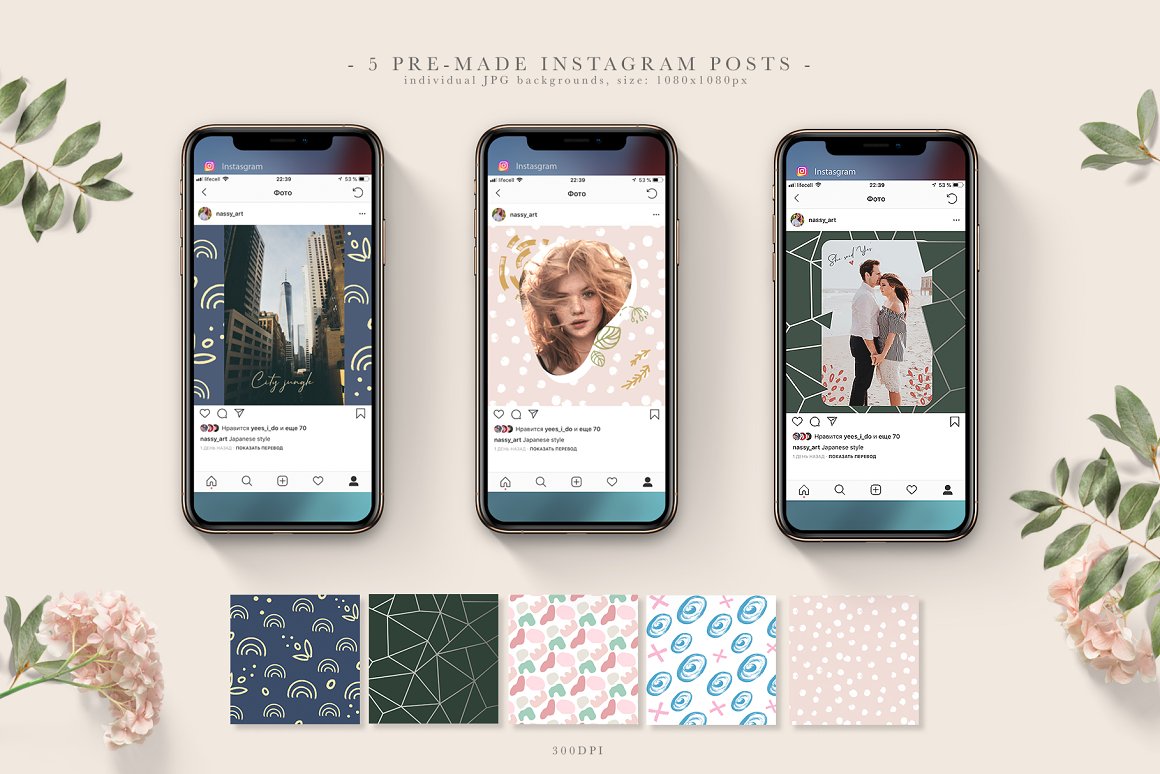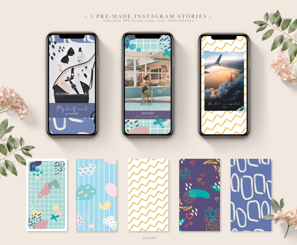- 10 Backgrounds for instagram (5 JPG for Stories and 5 JPG for Posts , 300 dpi)