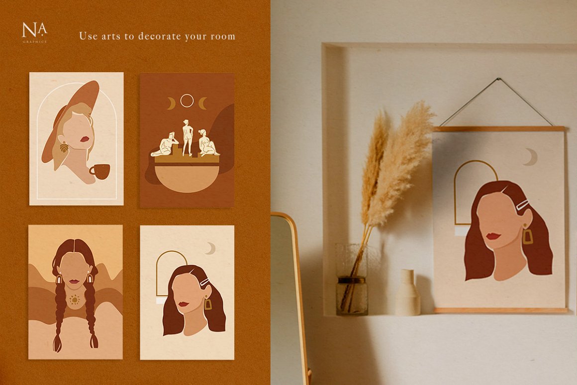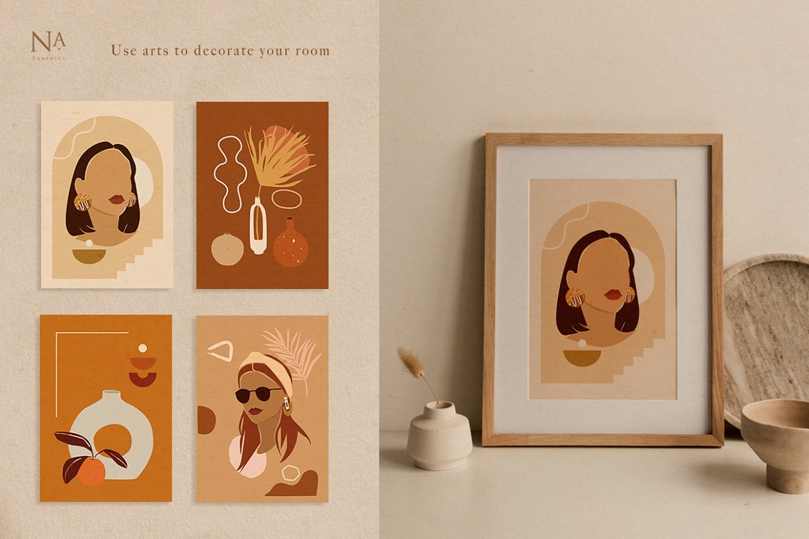 Abstract Woman Lady Boss Graphic – Decorate your wall with this collection of modern&fashion posters, use pre-made posts for instagram. Use these elements to create your own unique instagram account design. You just need to select poster and crop it, combine other provided items such foliage and write quote on the empty space. And creative account will be ready! In this pack, you can find a variety of fashionable artboards and posts. They are available to mix and match for design projects with endless composition combinations of all pieces. These elements are ideal for the creation of printed products: notebooks, invitations, wallpaper, cards and instagram posts. Add this beautiful vector graphics to create your own interesting profile or decorate your working place with the wall posters.