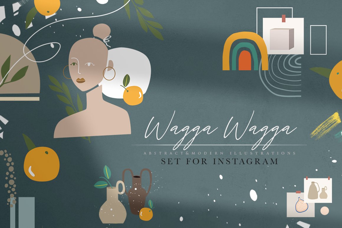 Wagga Wagga – Create magical branding with this set of colorful modern&abstract shapes with elements that contain pre-made objects, such as compositions, backgrounds, seamless patterns, artboards, isolated creative abstract shapes and backgrounds for instagram. Use these elements to create your own unique branding design. You just need to select an element, combine other provided items and сhoose a pattern or background. And branding will be ready! In this pack, you can find a variety of color artboards and patterns. They are available to mix and match for design projects with endless composition combinations of all pieces. These elements are ideal for the creation of printed products: notebooks, invitations, wallpaper, wrapping paper and textiles. Add this beautiful vector graphics and patterns to create your own brand. As for pleasant bonus use instagram templates to add more creativity on your profile!
