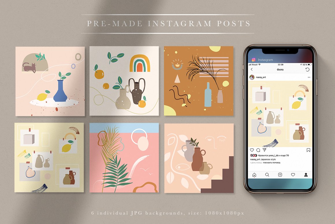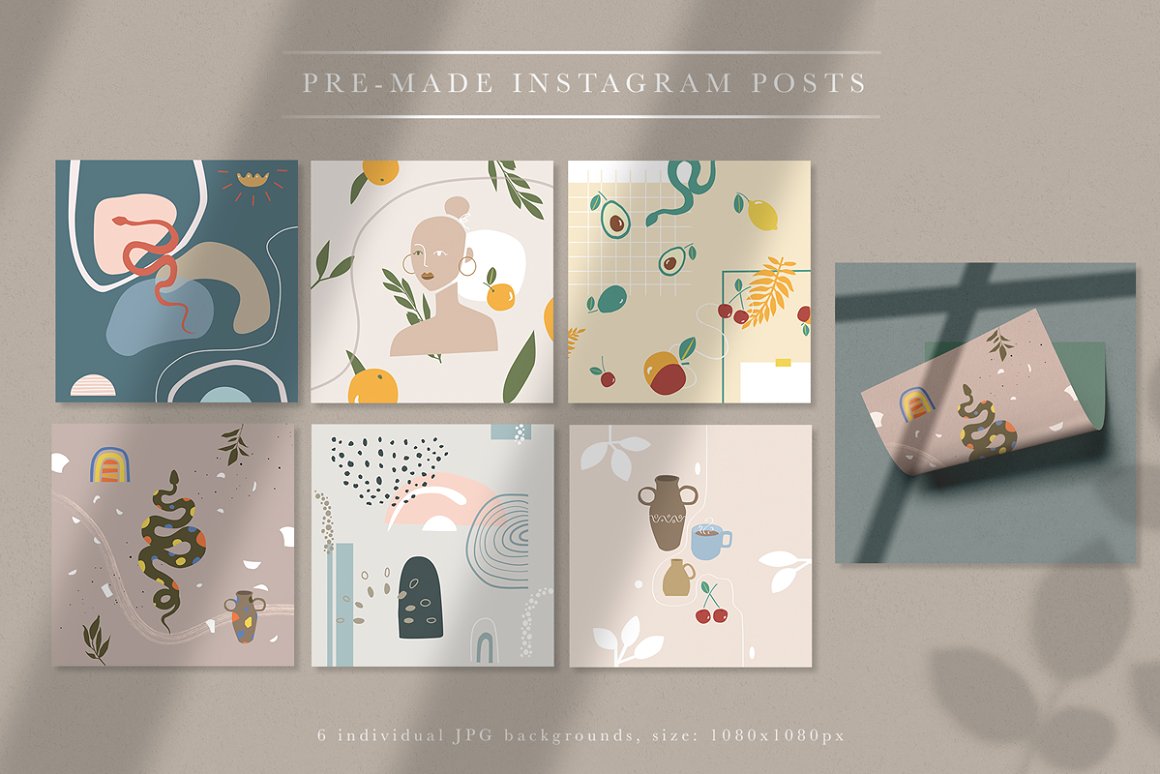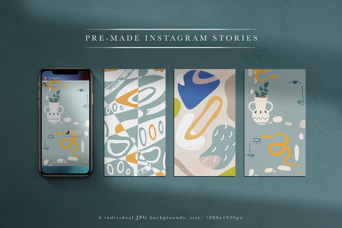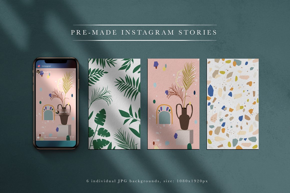 - 6 Pre-made Backgrounds for instagram (JPG: 1080×1920 px, 300 dpi)