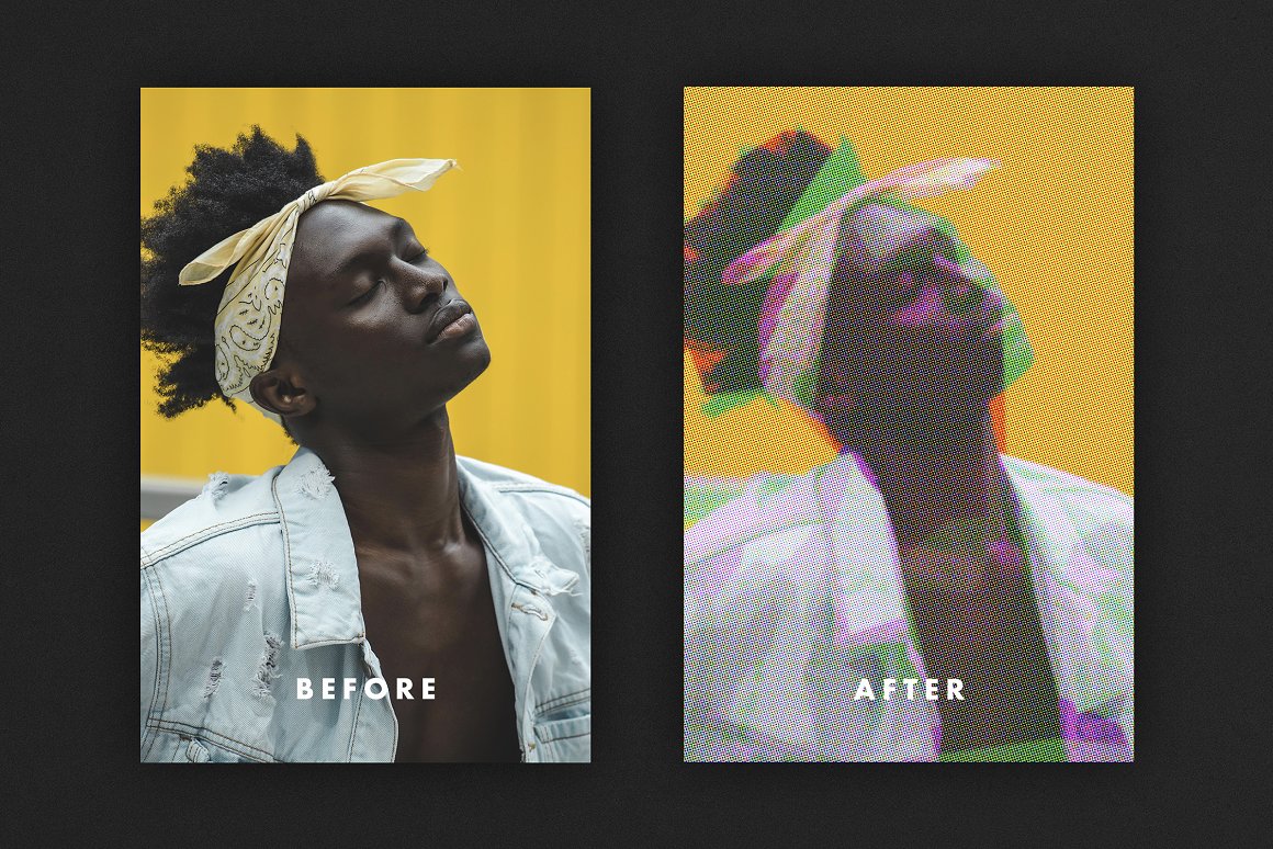 Artistic results won’t keep themselves waiting: a couple of clicks, and the end result is in front of your eyes to amaze the audience with the vintage halftone feel.
