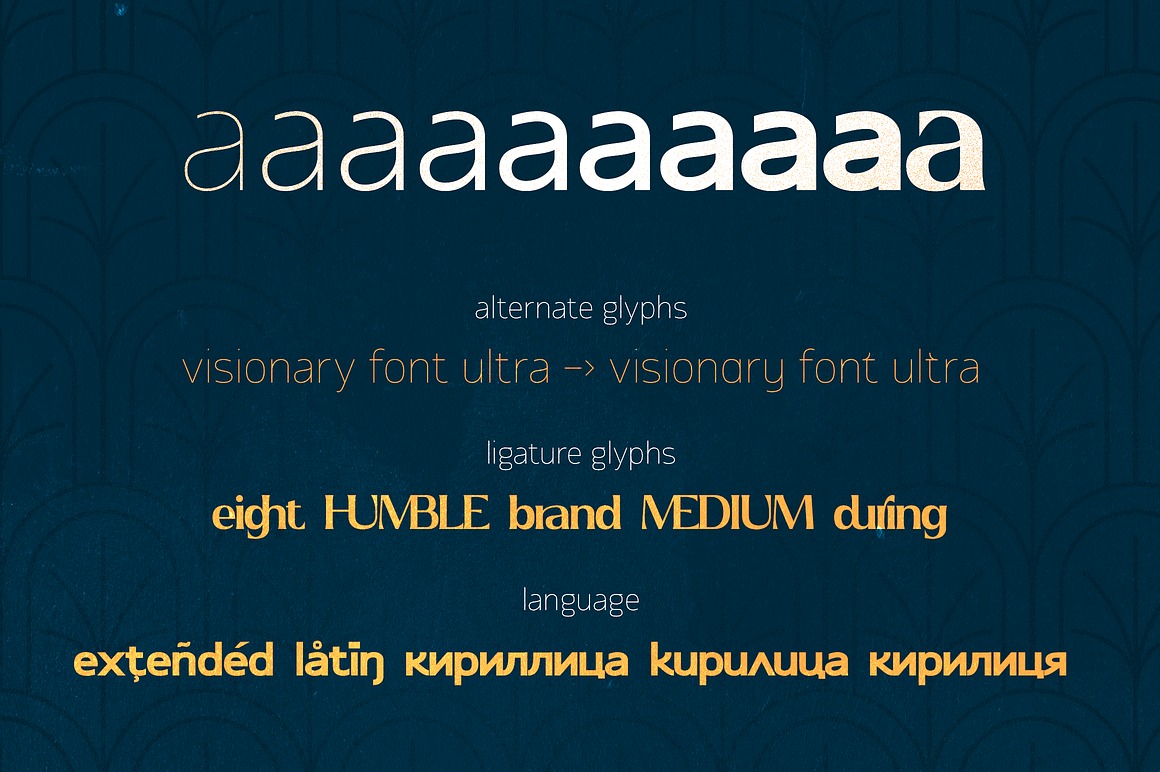 VFU (Visionary Font Ultra) is a versatile typeface with 10 sans serif weights, matching italics, and a unique display version. Designed for modern and creative projects, VFU supports extended Latin, Cyrillic, and Bulgarian Cyrillic scripts, offering alternate and ligature glyphs for added design flexibility. Ideal for headlines, branding, and editorial use, this typeface brings a visionary touch to any layout.