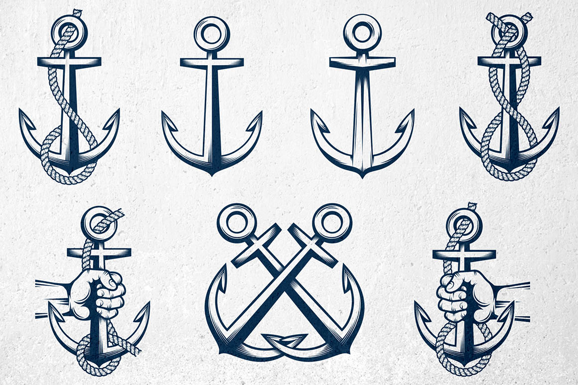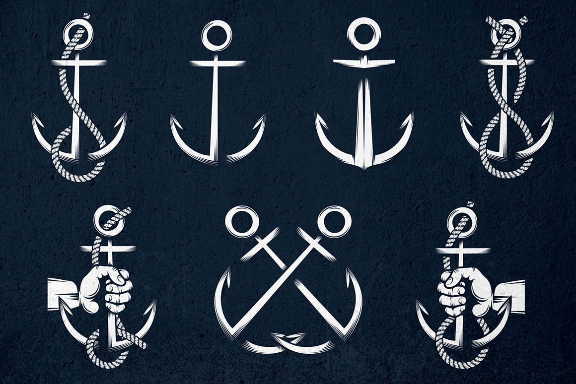 - 7 anchor design elements in 2 options – for light background and for dark background. Vector EPS10 and raster separate PNG files.