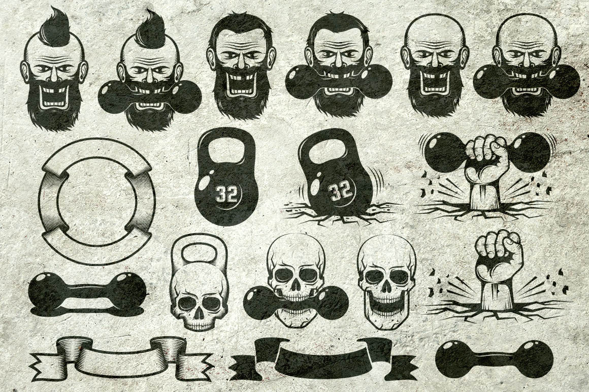- 9 new gym logos in 2 versions (for light and for dark background) – in EPS10 vector files, as well as in PSD layered files 4500 x 4500px