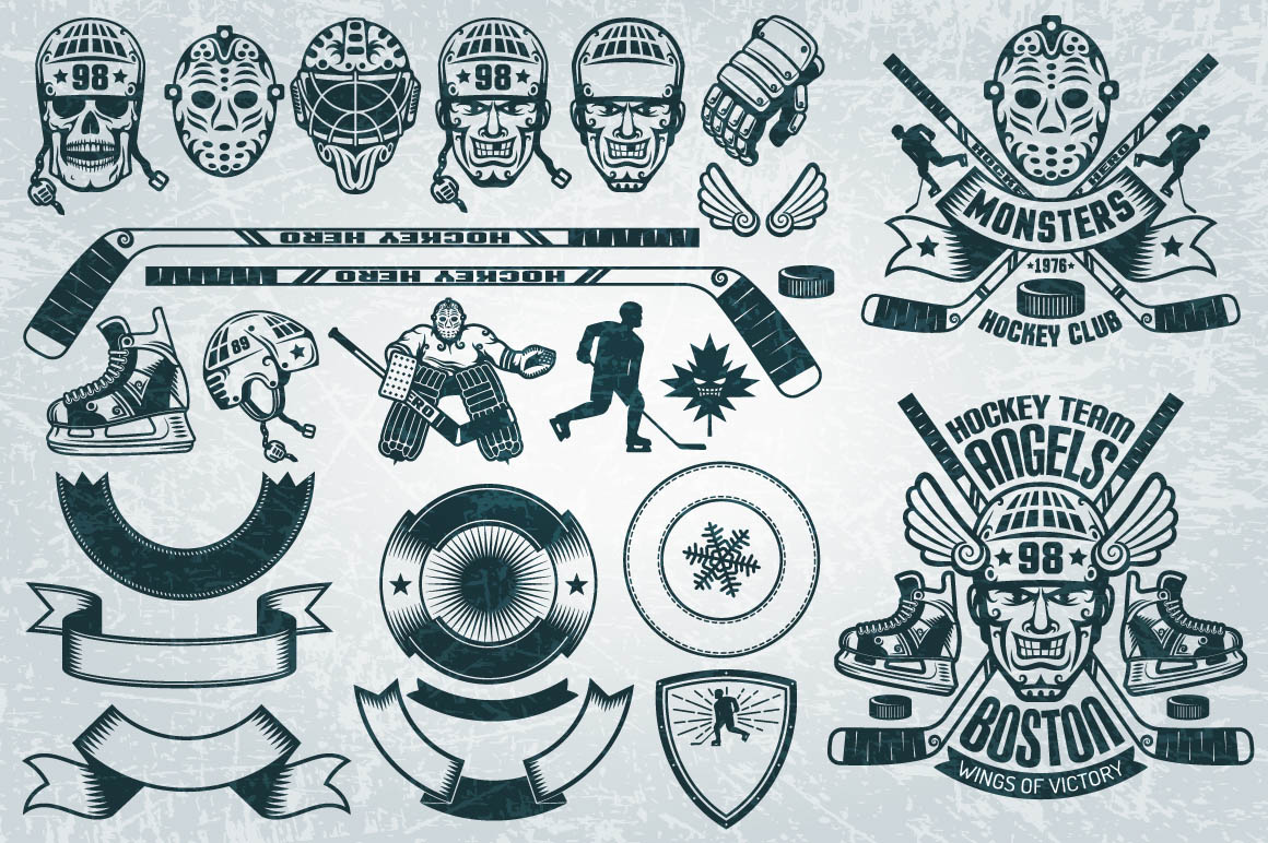 Everyone knows that hockey is my favorite game. And here’s another hockey set. 3 hockey emblems and several design elements. Authentic and vintage.
