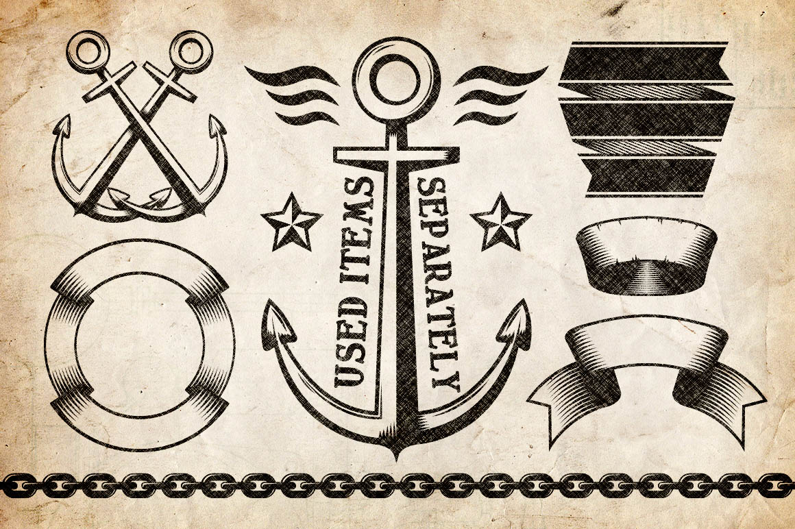- 3 anchor retro emblems in 2 options – for light background and for dark background. Vector AI CS6, EPS10 and raster layered PSD, JPG, PNG with transparent background files. AI CS6 and PSD files with editable text.