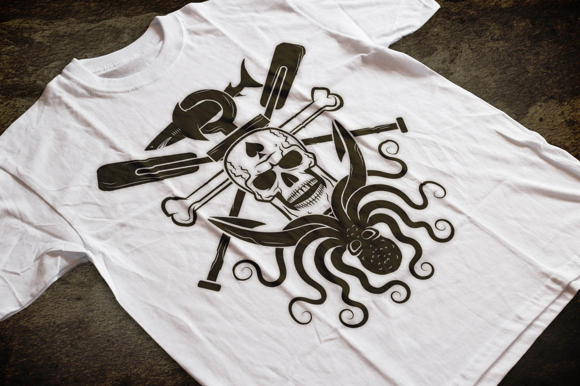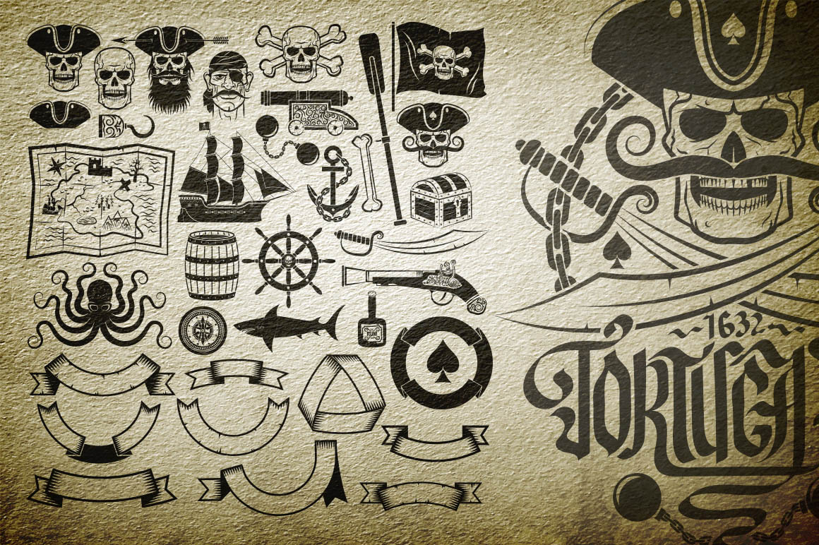 Amazing bundle of pirate designs, and emblems vector and raster versions. Perfect for use on tattoos, t-shirts, mugs, cards, and other items of identity. You can use existing logos or design your own from the enclosed designs.