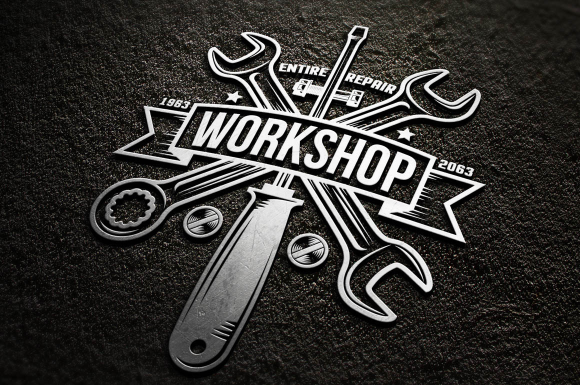 - 12 workshop logos – in EPS10 vector file, as well as in PSD file 11600 x 7720 px with transparent background (text on a separate layer and can be easily replaced)