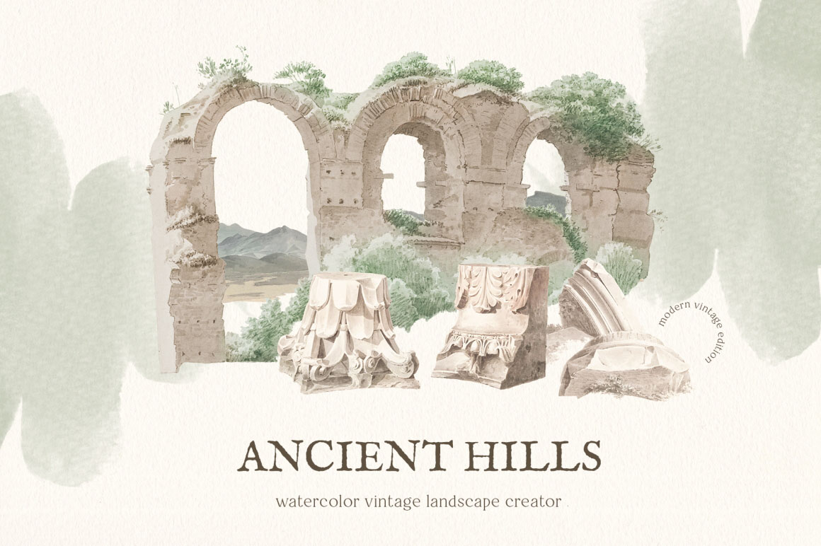 1. ★ Ancient hills vintage landscape set from Maria Letta