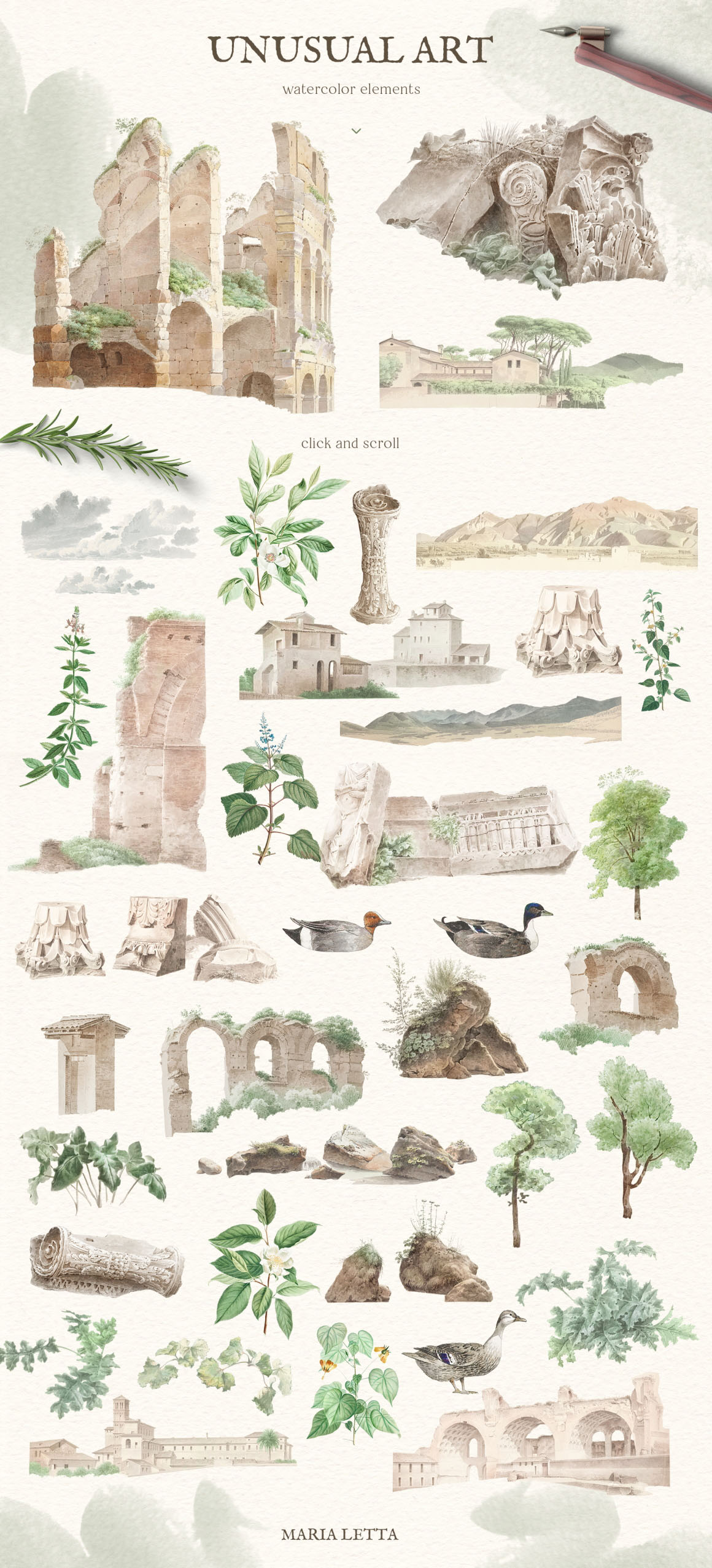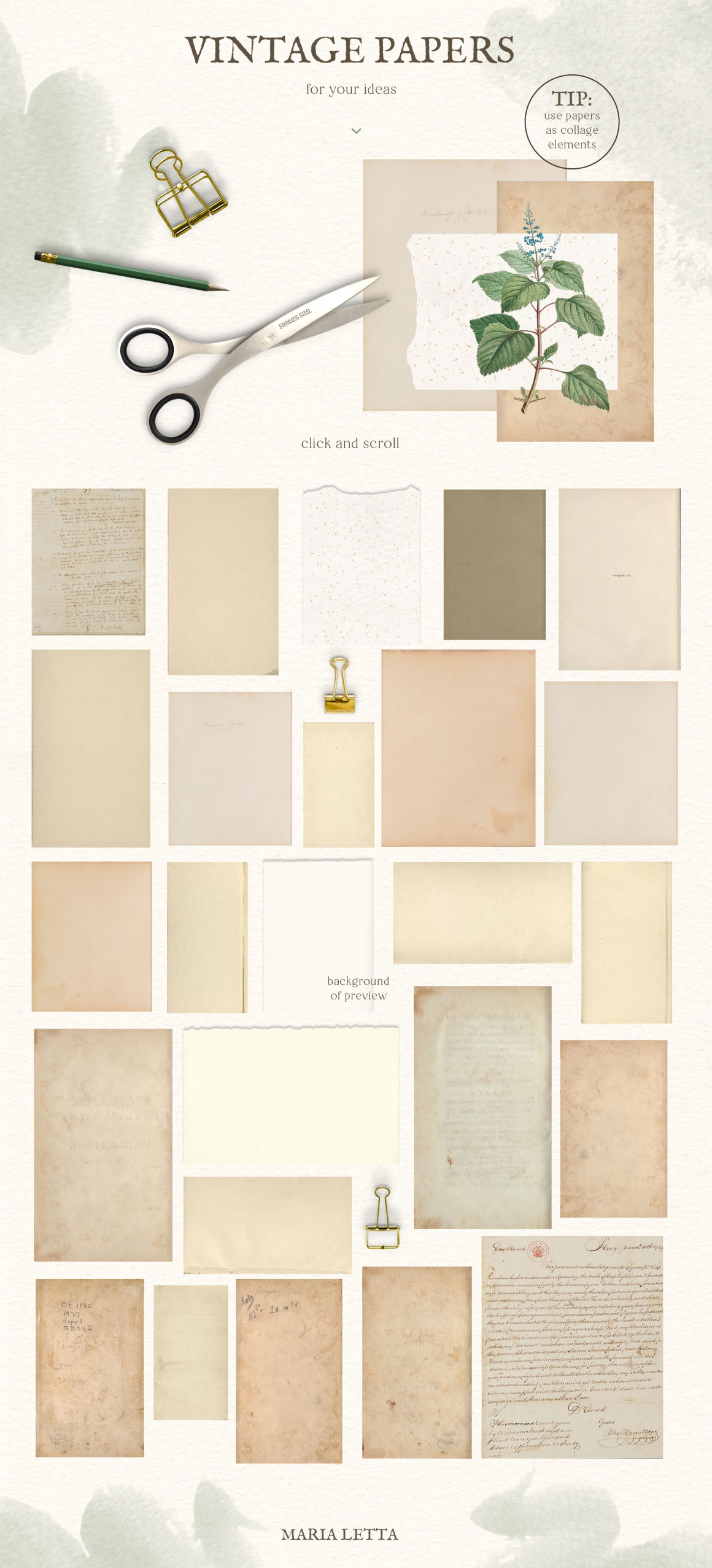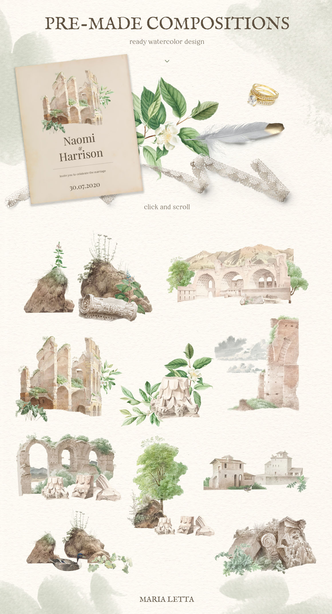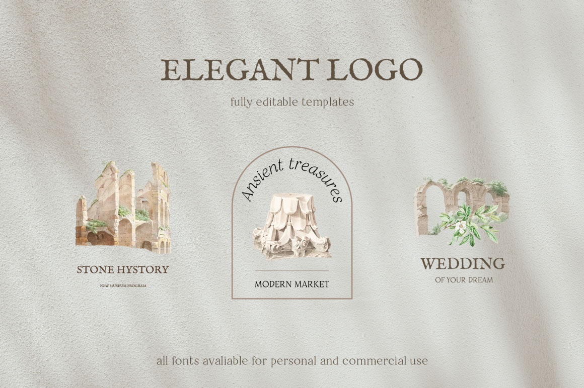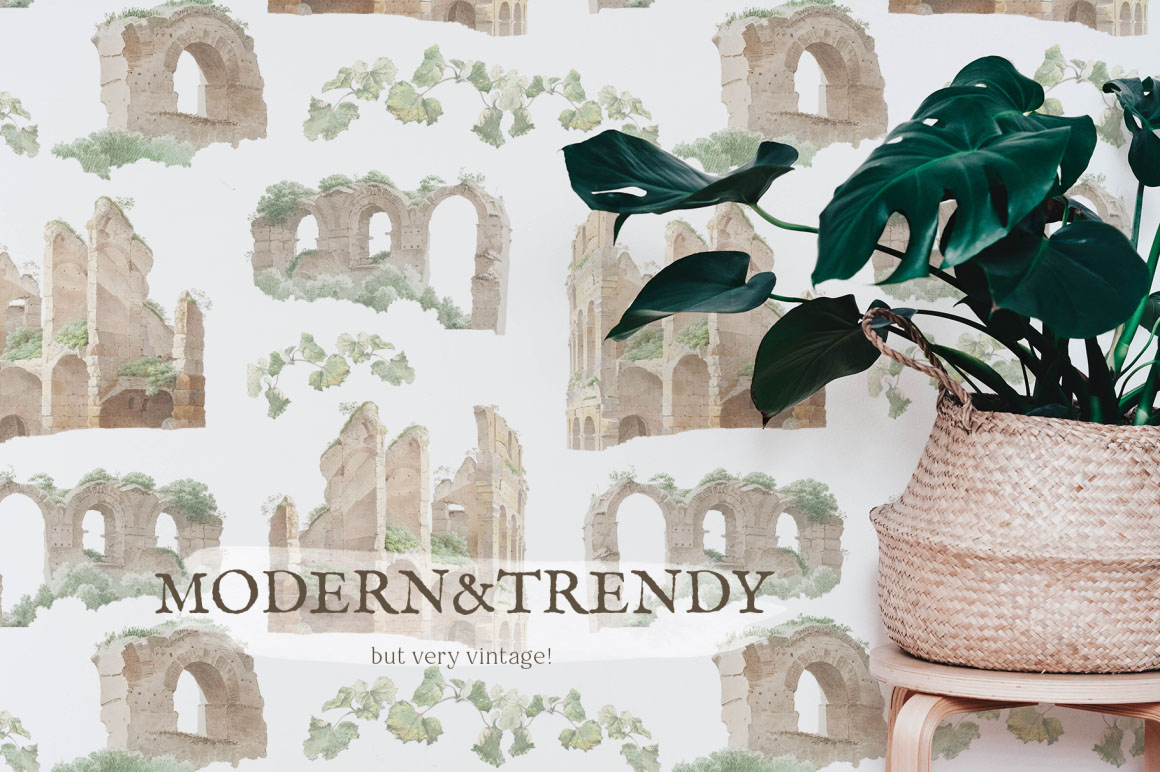 Fresh and stylish, modern and ancient set! Amazing old watercolors was carefully edited and now you can make something very unusual. Especially cool for weddings in vintage style – you can make full scenery and ready pictures for invitations and other paper stationery. Many vintage papers will excellent background for your work. Set will be wonderful for modern logo design on vintage, ancient, modern topics, for breathtaking posters, cards, invitations and other paper stationery, great for fabric, scrapbooking, branding, textile, surface design, suitable for social media, advertising, quotes, blogs, web, banners.